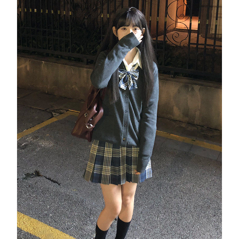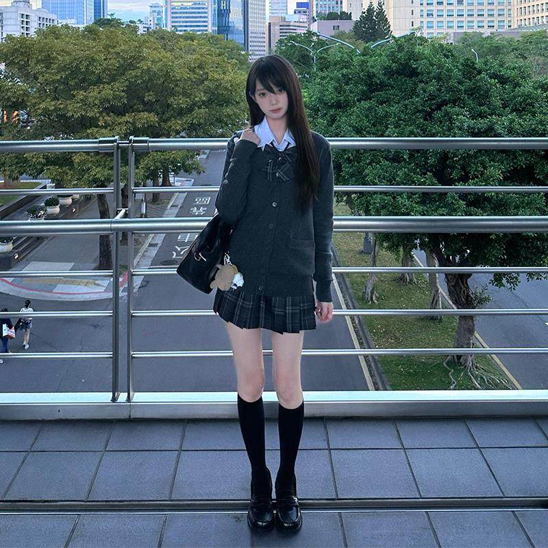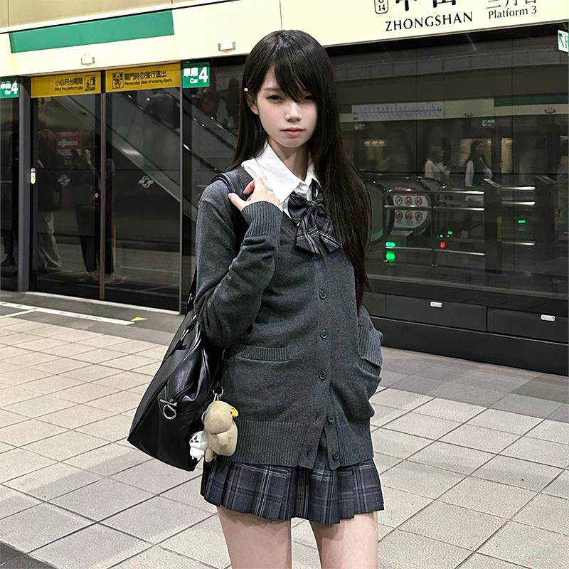 灰野川jk毛衣灰色针织开 衫外套女秋外搭学院风制服上衣东京岁时