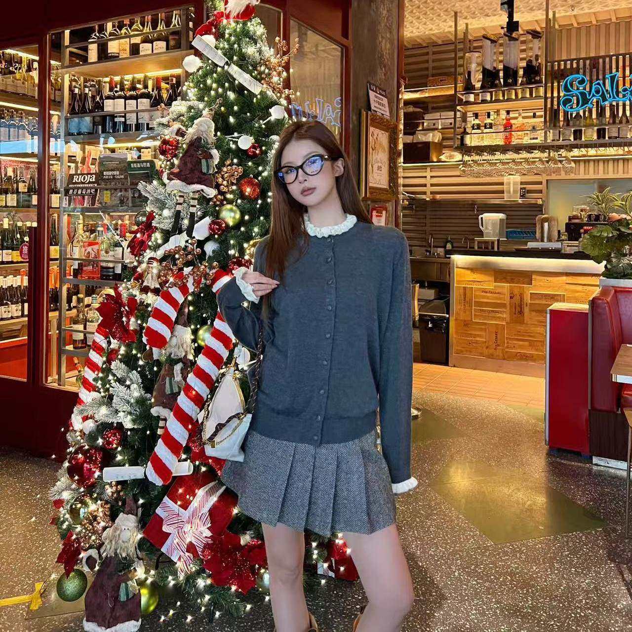 好漂亮花边领羊毛针织开衫外套女2025年冬季新款上衣宽松时尚热销