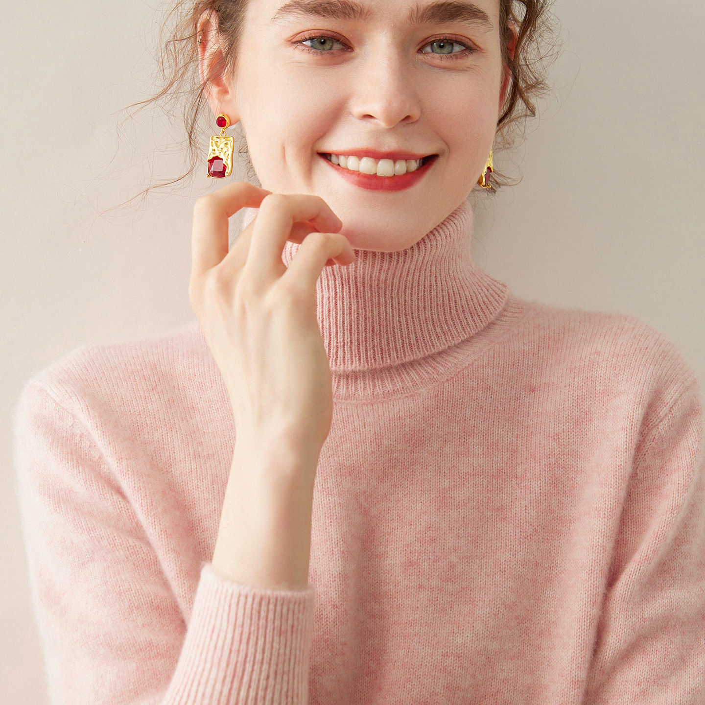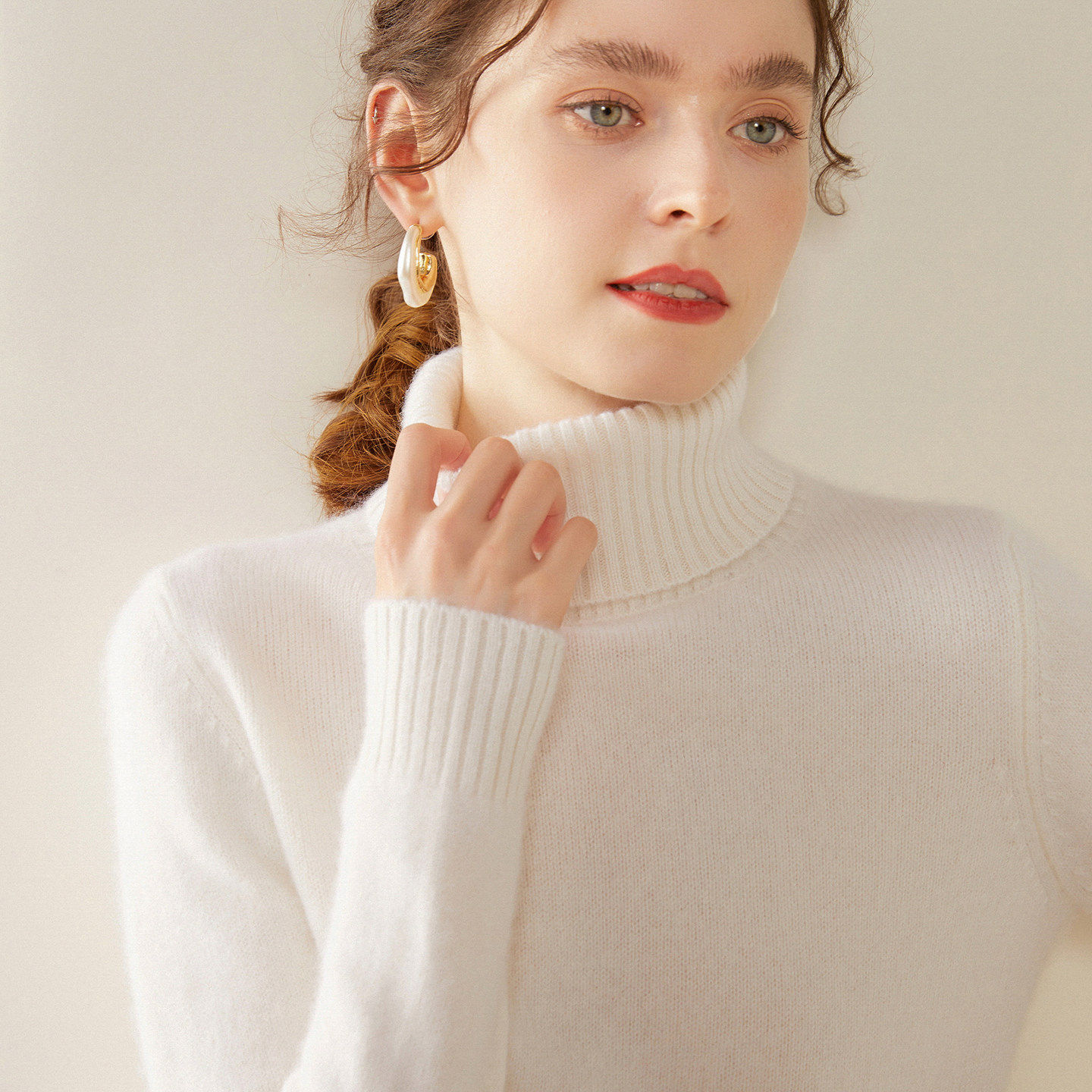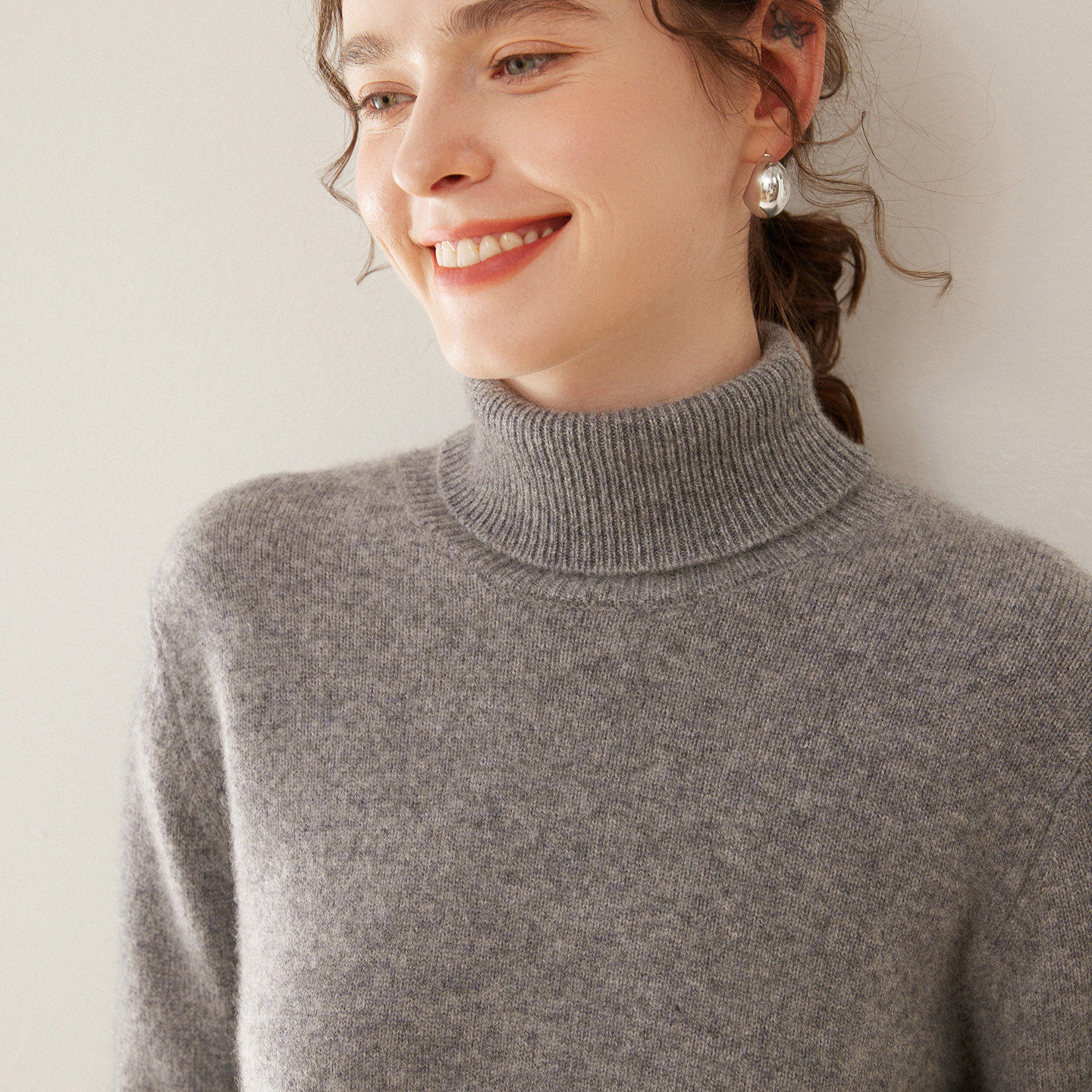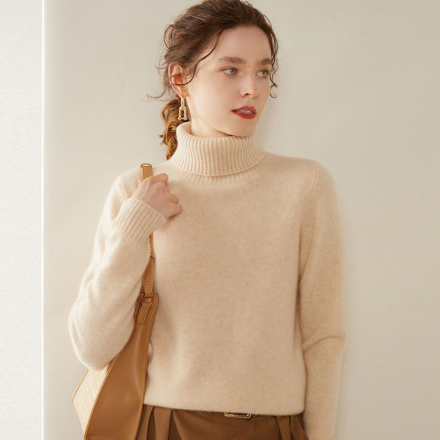 2025秋季新款高领羊绒衫女双股加厚山羊绒毛衣套头宽松针织打底衫