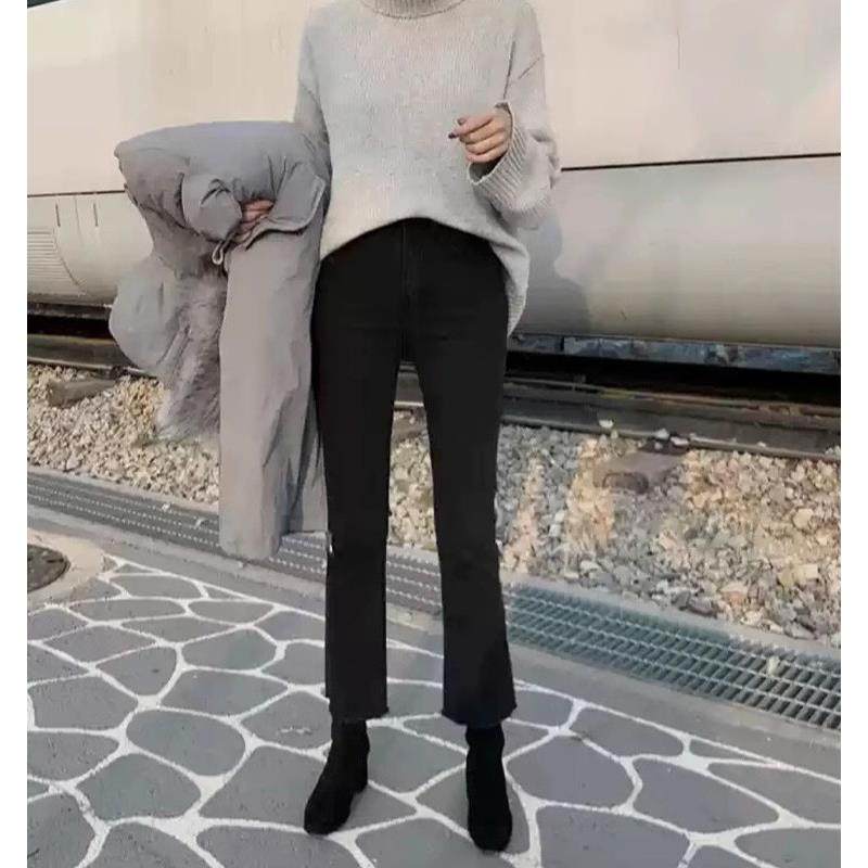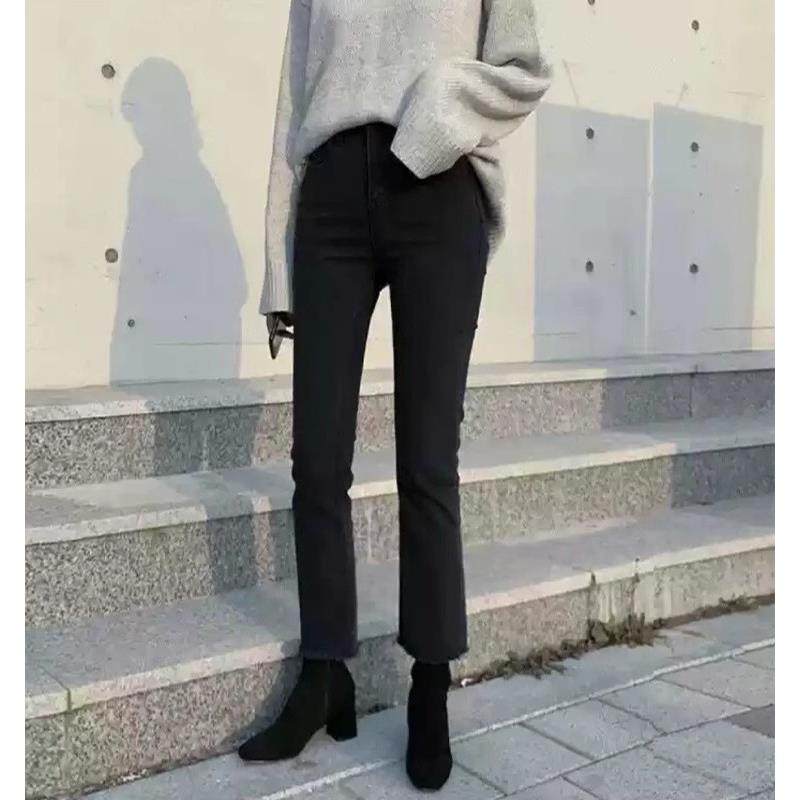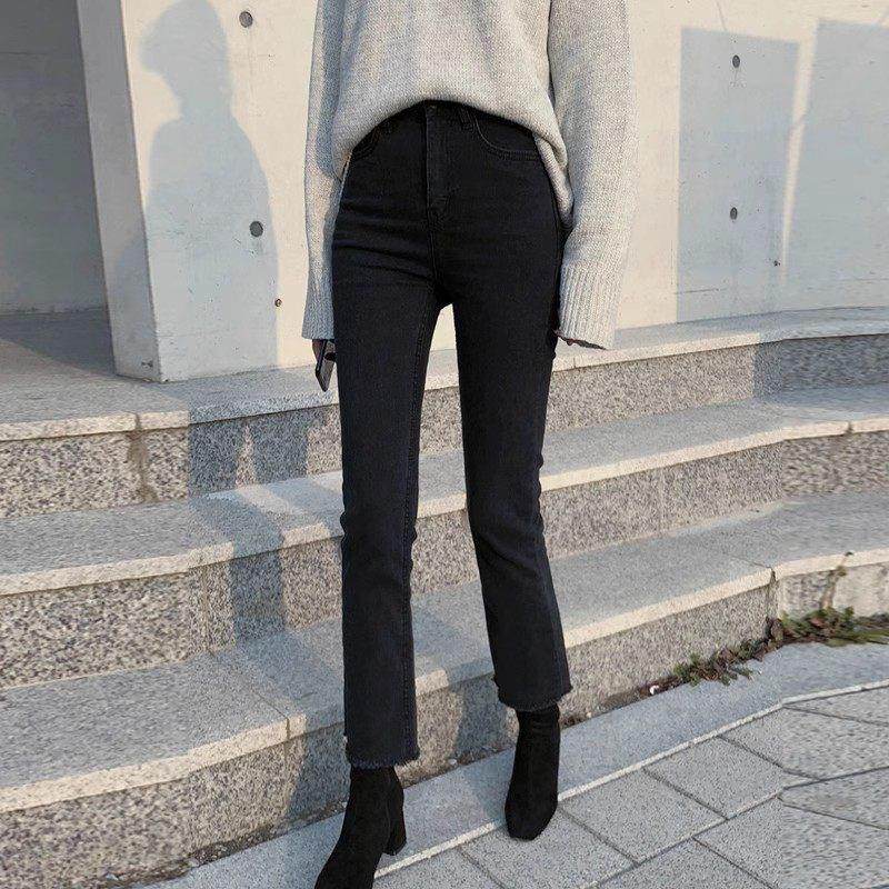 首页> 女装> 黑色九分牛仔裤女士春秋小个子显高微喇叭修身加绒高腰直筒烟管裤