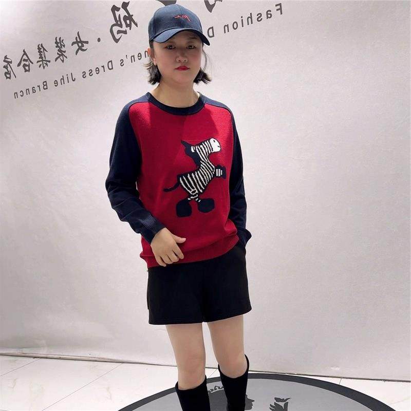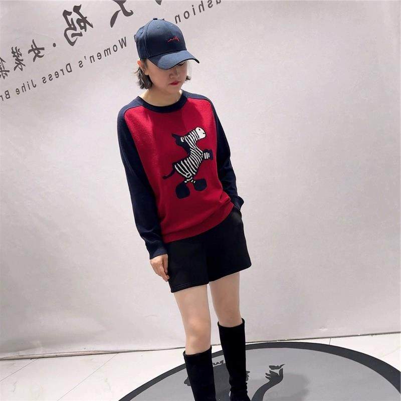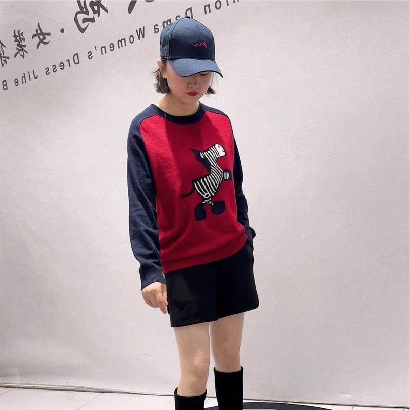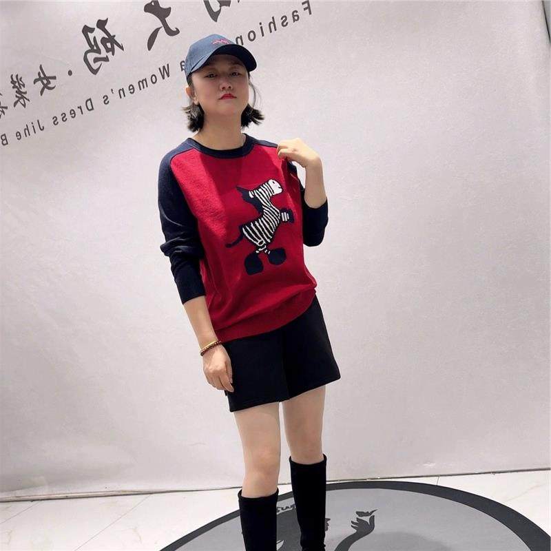 芮娜依莲2026春撞色针织衫加大码女装加肥加大打底衫T恤上衣5563