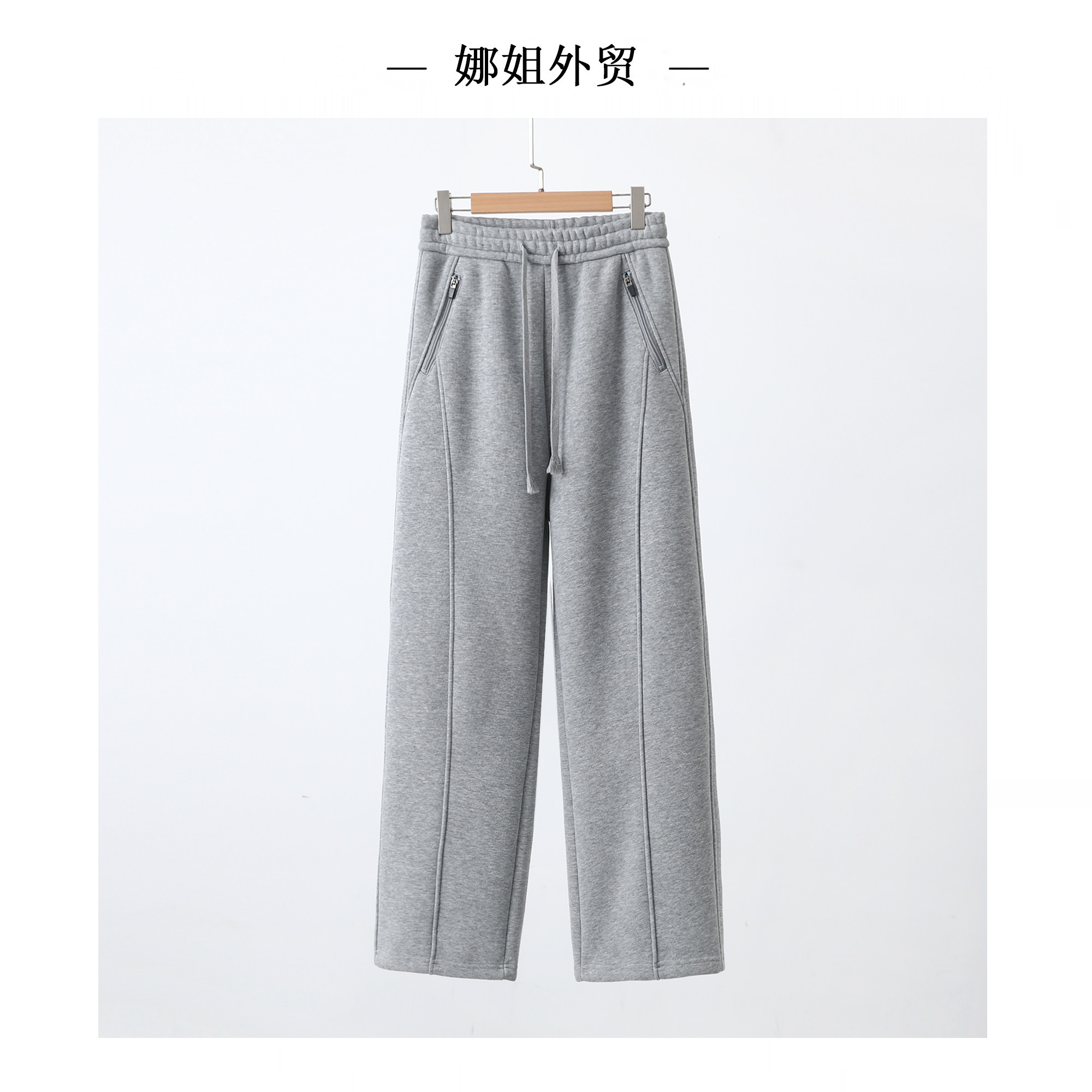 冬季韩国原单定染定制面料水洗加厚高腰拉链口袋弯刀裤休闲长裤