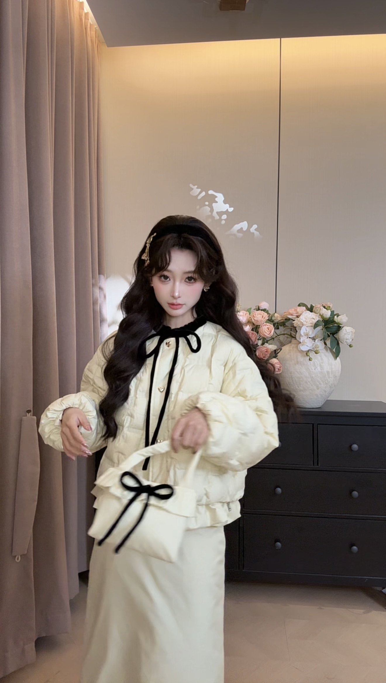 可可可欣【黄色曲奇羽绒套装】女装洋气时尚休闲原创小众老钱风