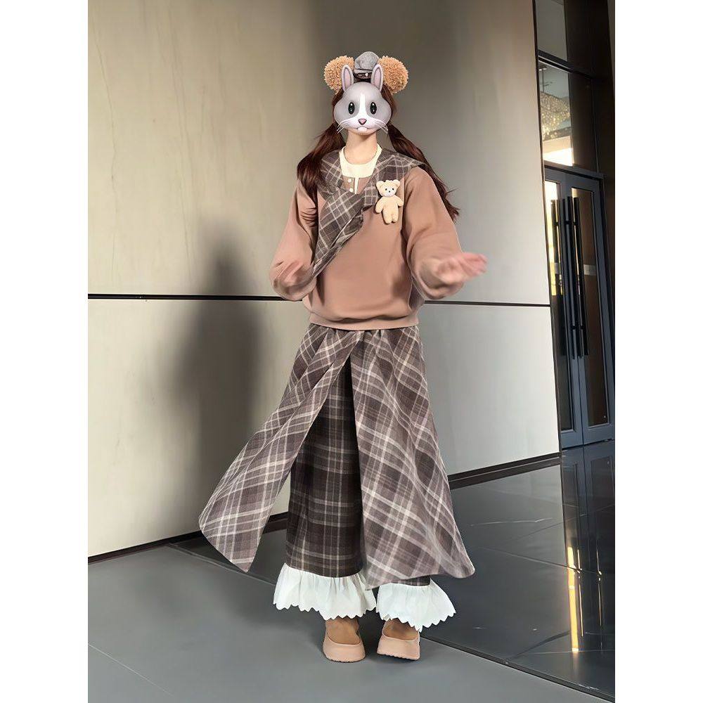 【栗子仓鼠】小个子甜美可爱清新俏皮卫衣+裤裙+披肩三件套装女
