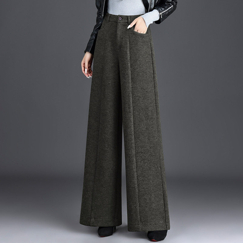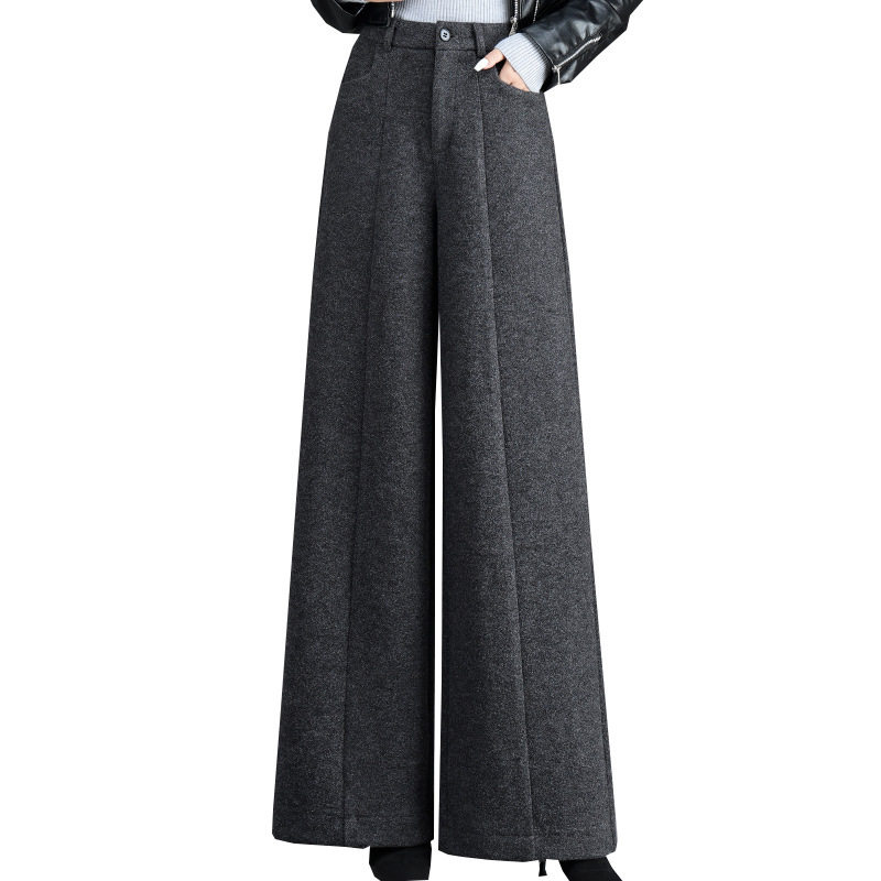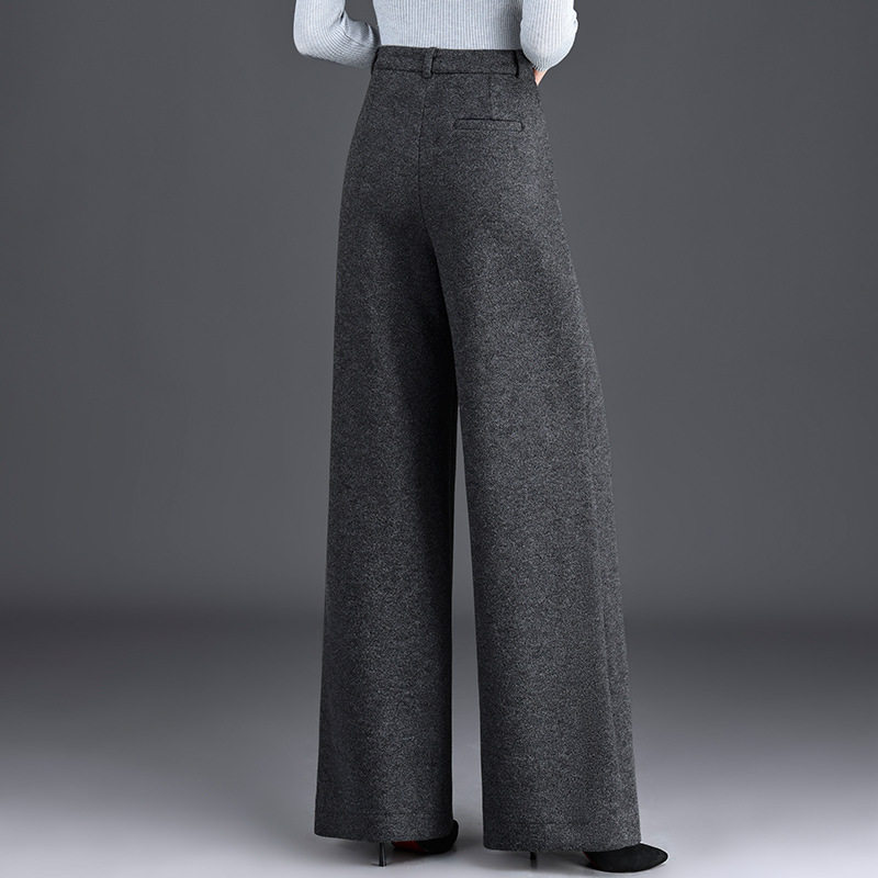 羊毛呢加绒简约阔腿裤女装秋冬休闲裤宽松显瘦坠感直筒裤通勤风