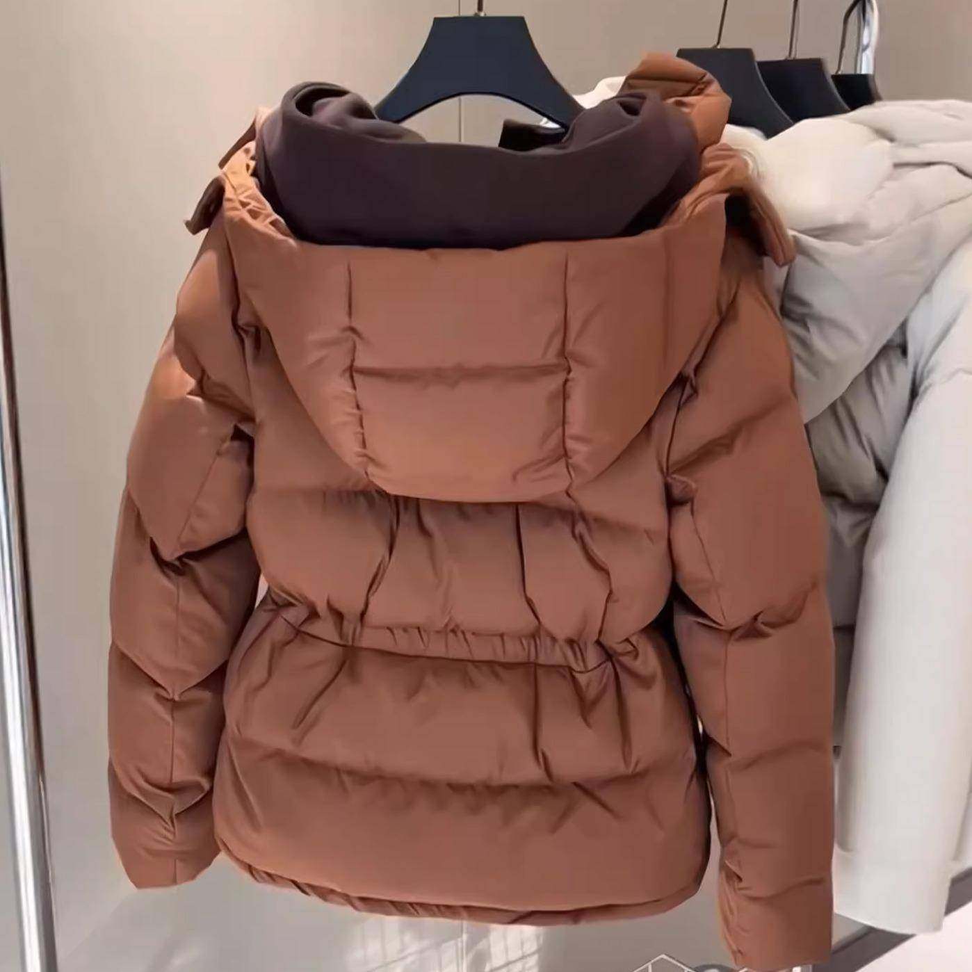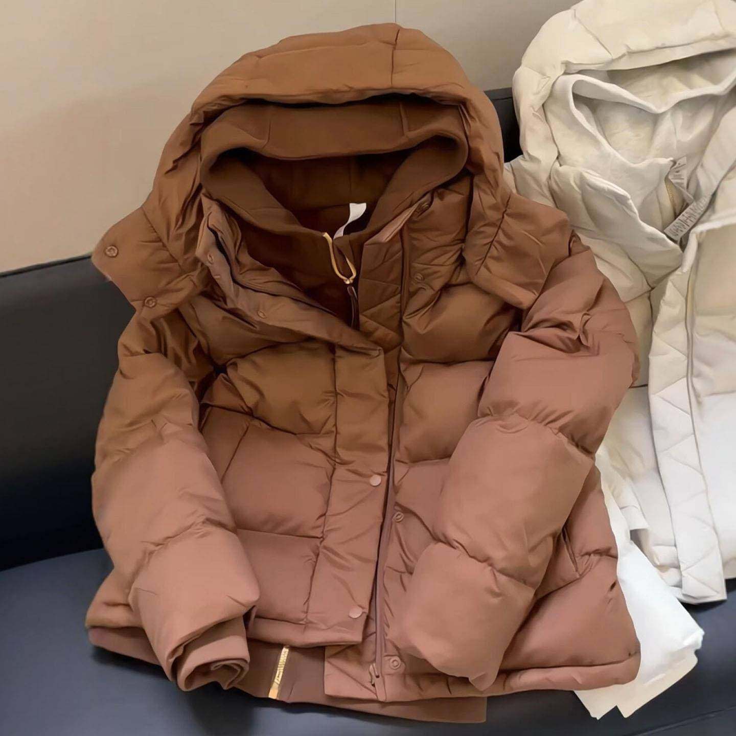 棕色连帽羽绒棉服面包服女独特超好看冬装保暖短款轻薄棉袄厚外套