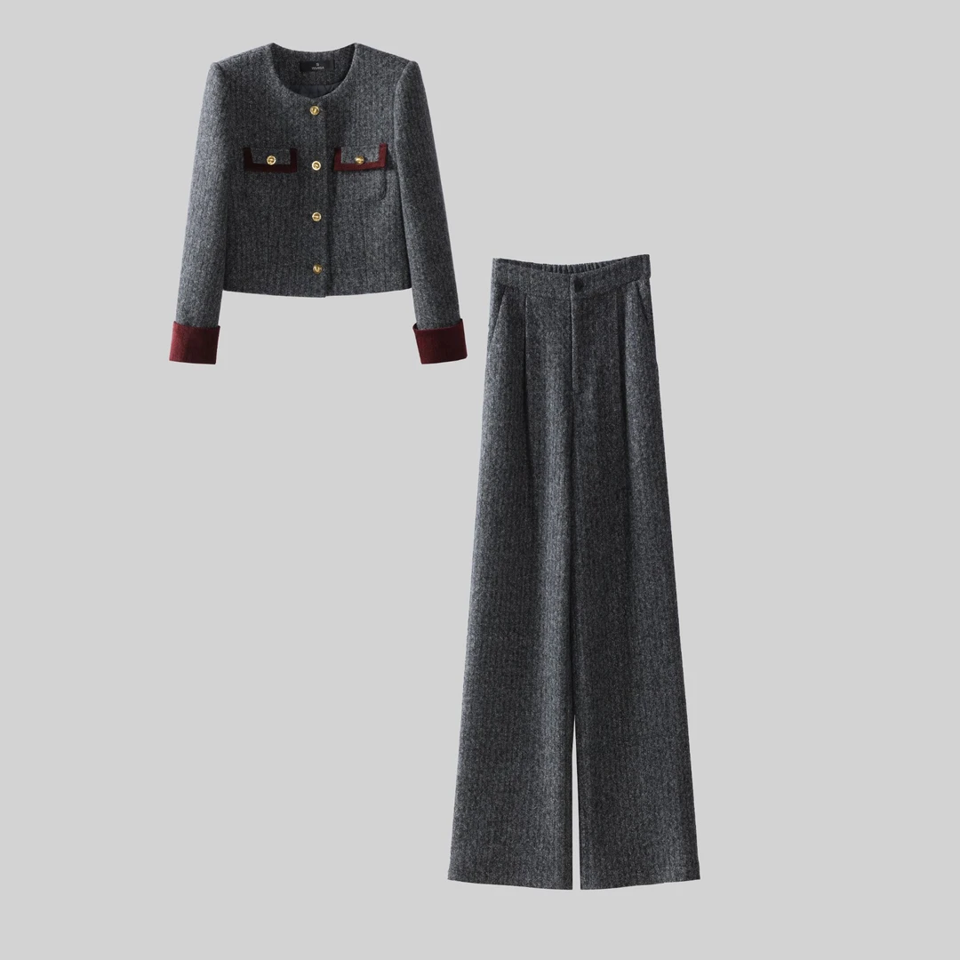 加绒加厚时尚套装女2025秋冬新款上衣阔腿裤套装两件套DM0117