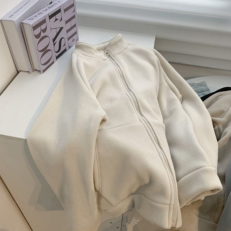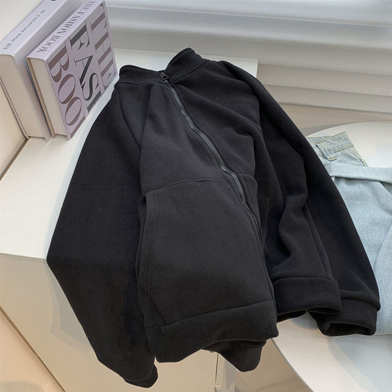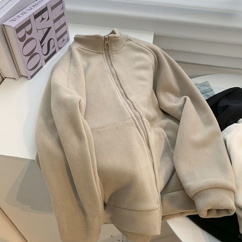 保暖立领仿羊羔毛双面摇粒绒外套女秋冬新款宽松显瘦加绒加厚卫衣