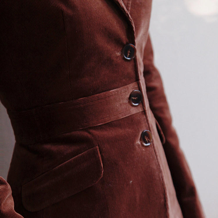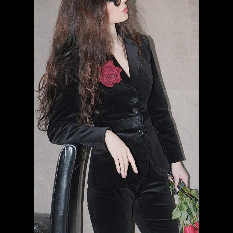 首页> 女装> LISA YU/丽莎余LISAYU灯芯条紧身黑色弹力西装外套丝绒套装两件套