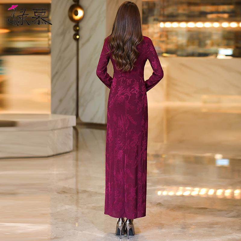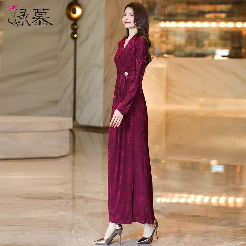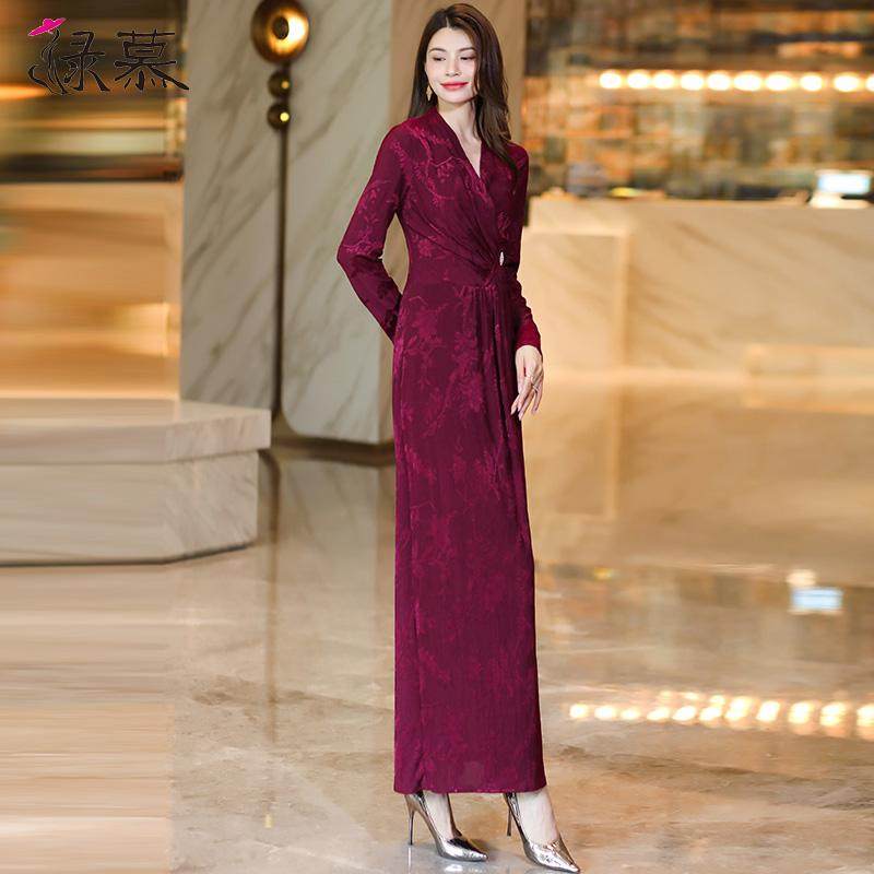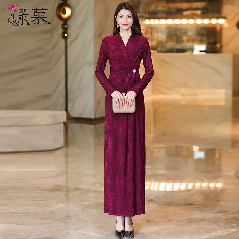 贵夫人气质春秋加绒加厚连衣裙2025新款女收腰正式场合精致长裙