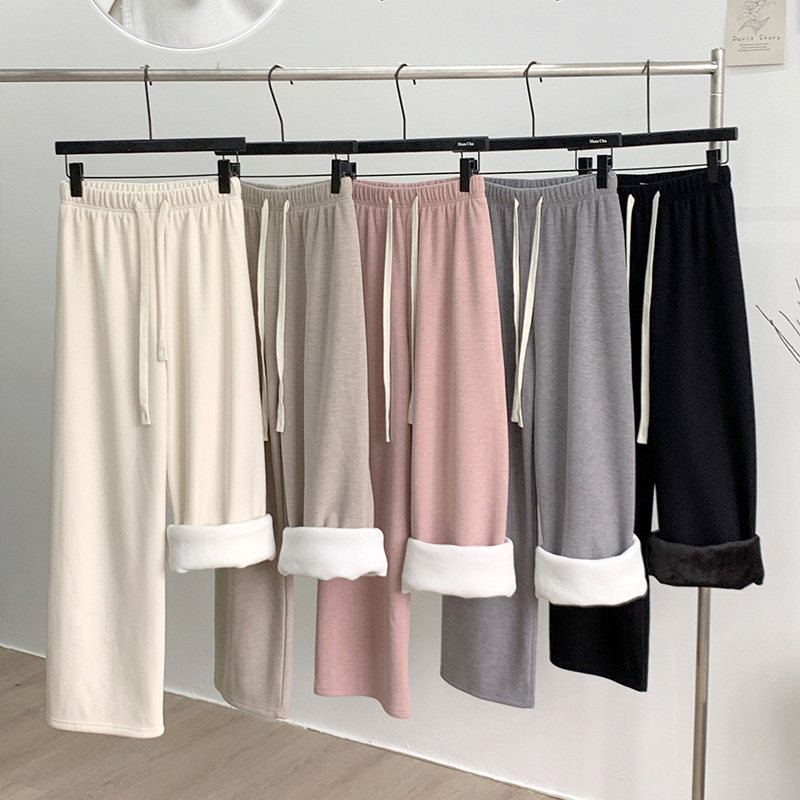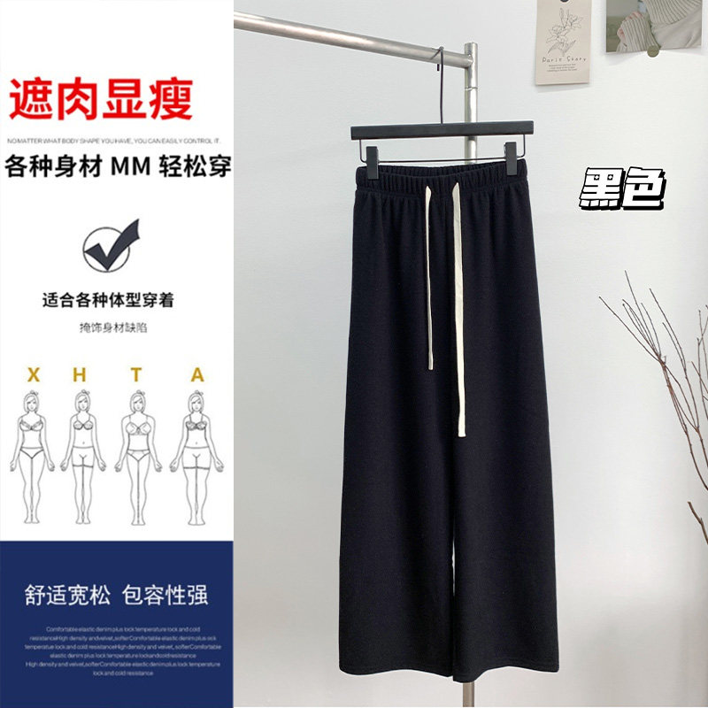 首页> 女装> 150小矮个子羊绒针织阔腿裤女秋冬加绒加厚抽绳保暖休闲直筒长裤