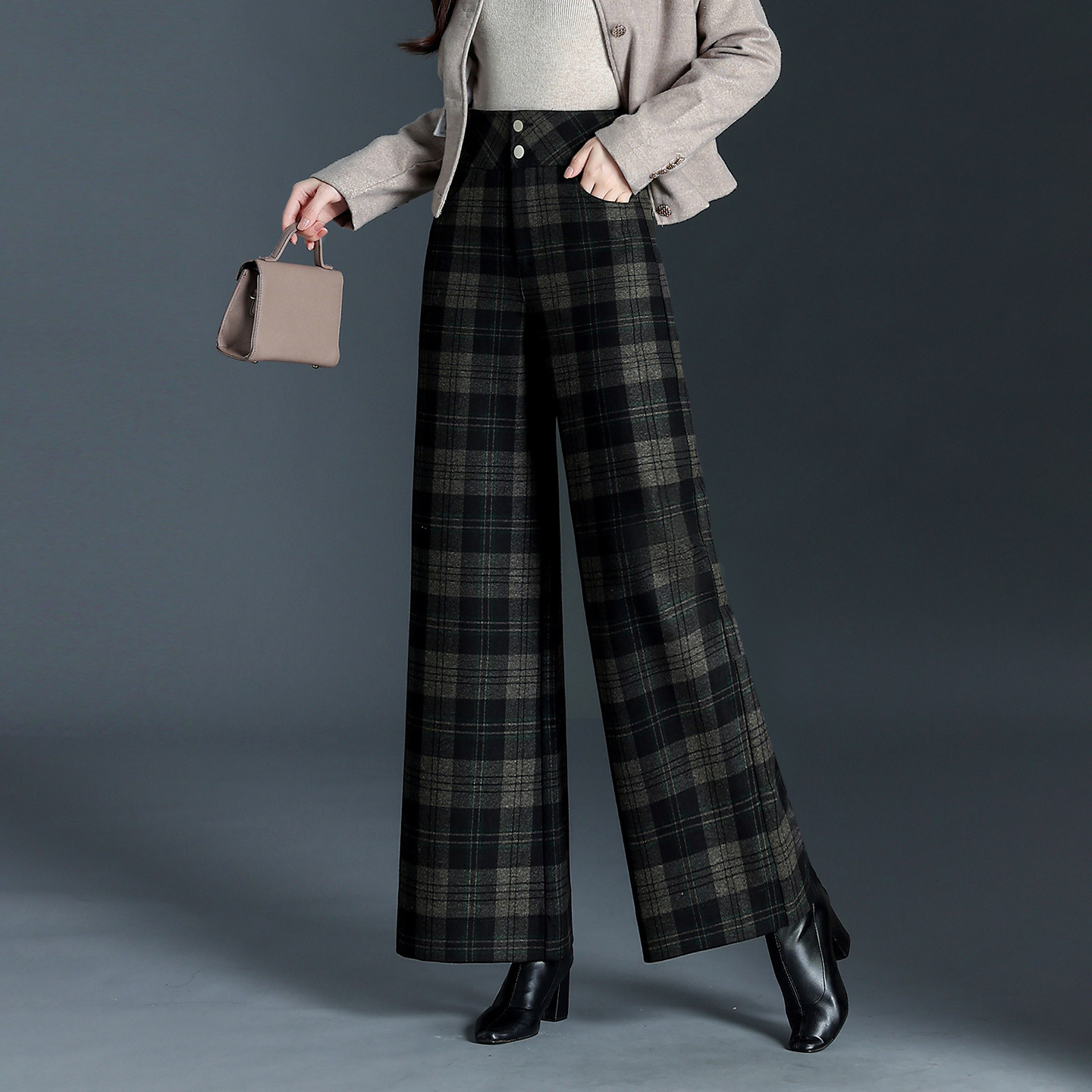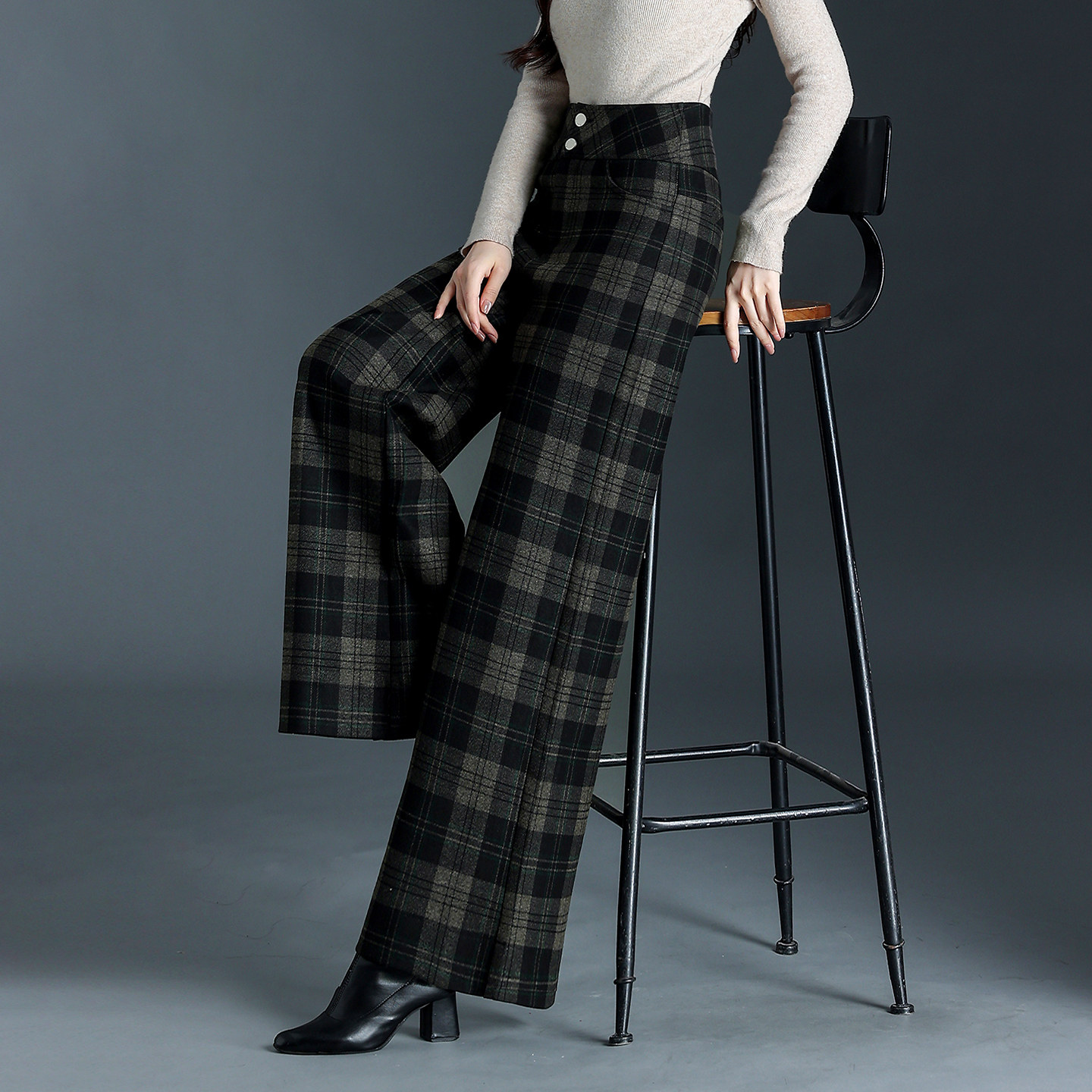 首页> 女装> 毛呢格子长裤阔腿裤女秋冬2025新款高腰垂感宽松通勤休闲裤大脚裤