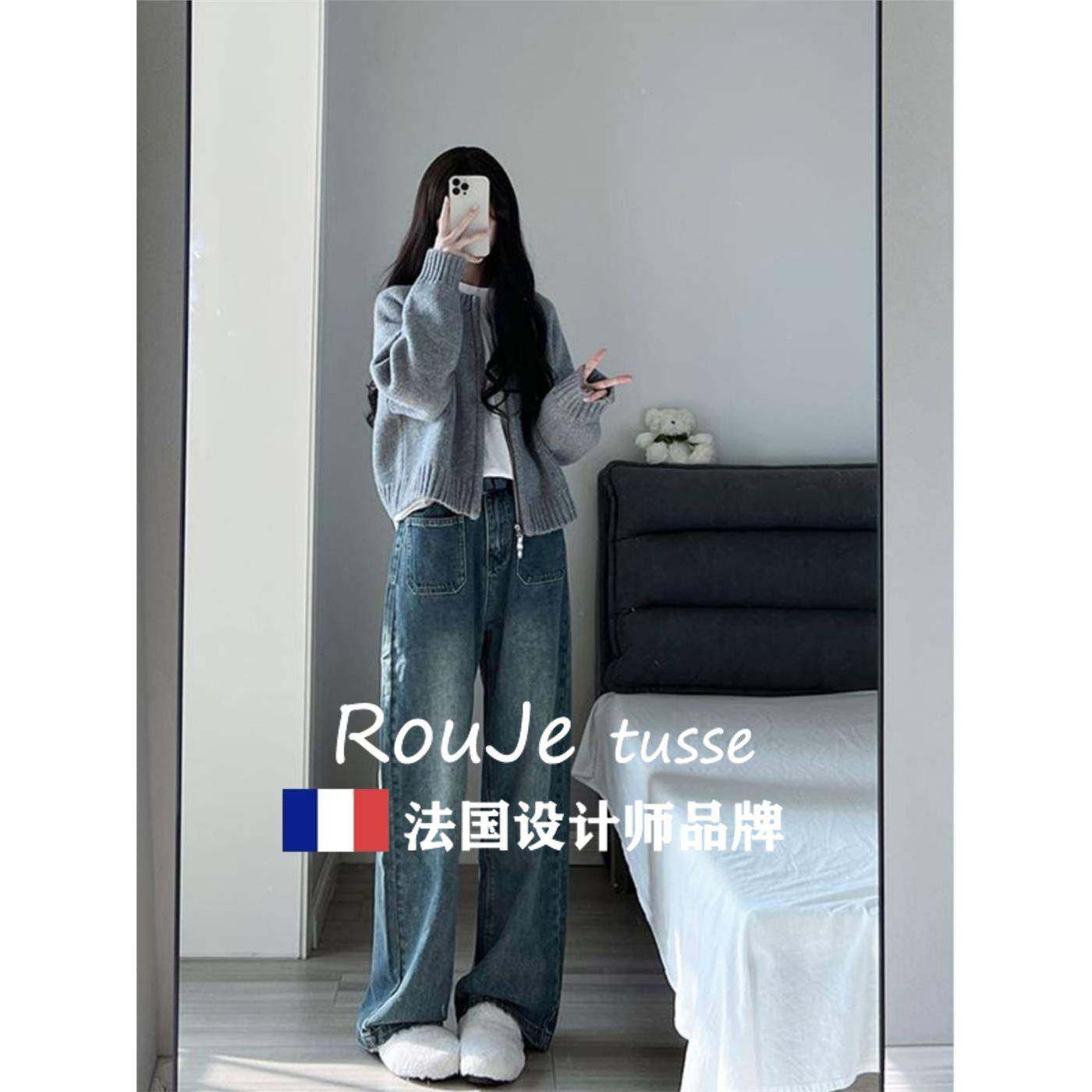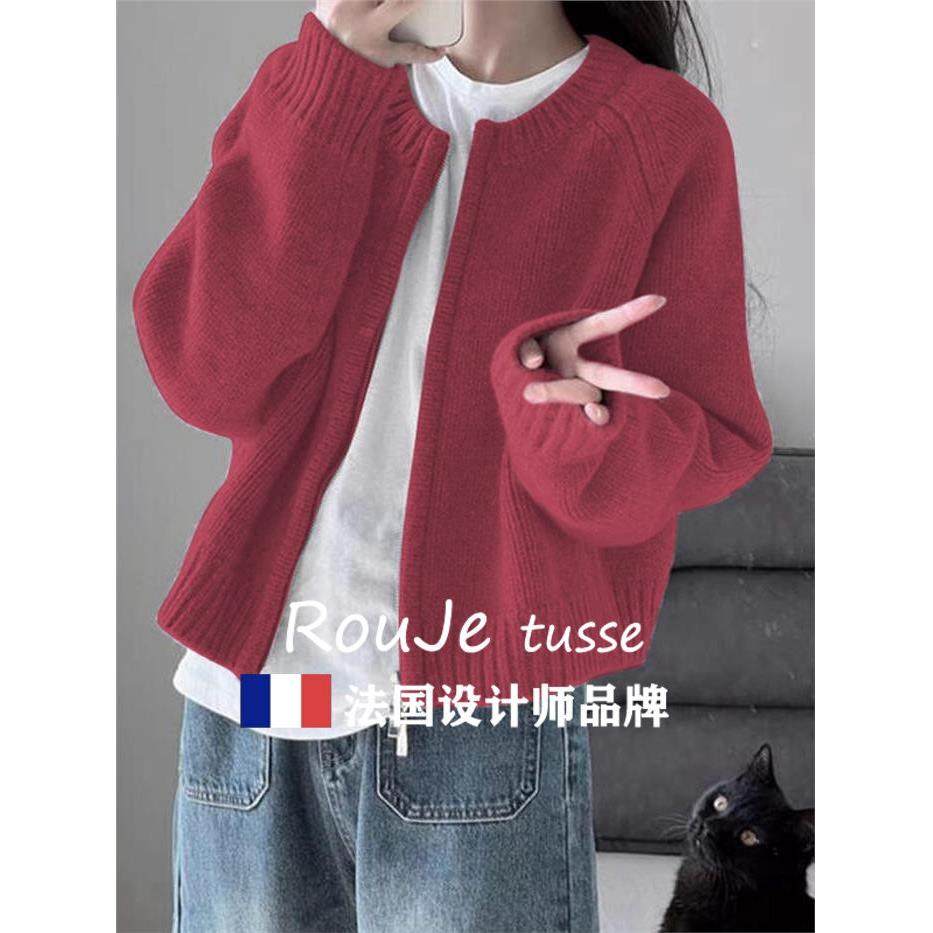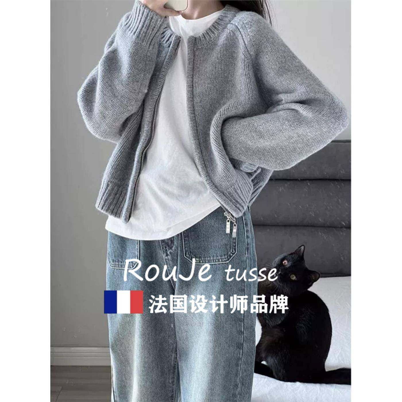 Rouje tusse拉炼羊绒毛衣女新款秋冬慵懒高质感羊毛针织开衫外套