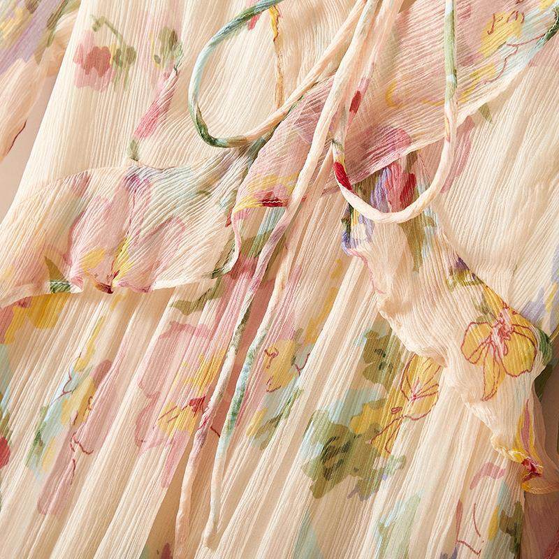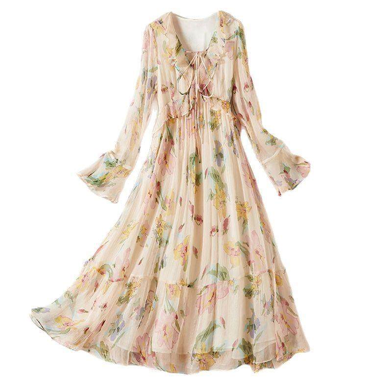 芭碧尔女装真丝连衣裙优质印花长袖桑蚕丝沙滩长裙85024