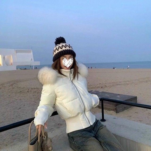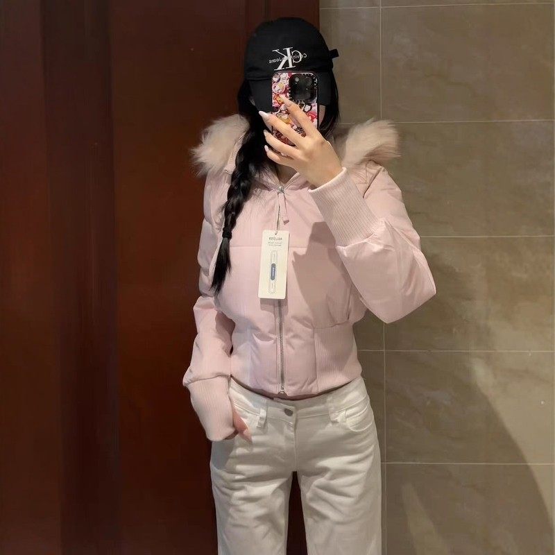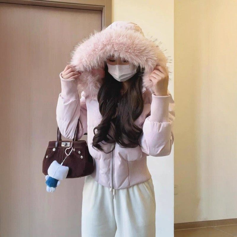 小海鸥收腰短款大毛领冬季新款粉色羽绒棉服女2025冬装棉袄厚外套