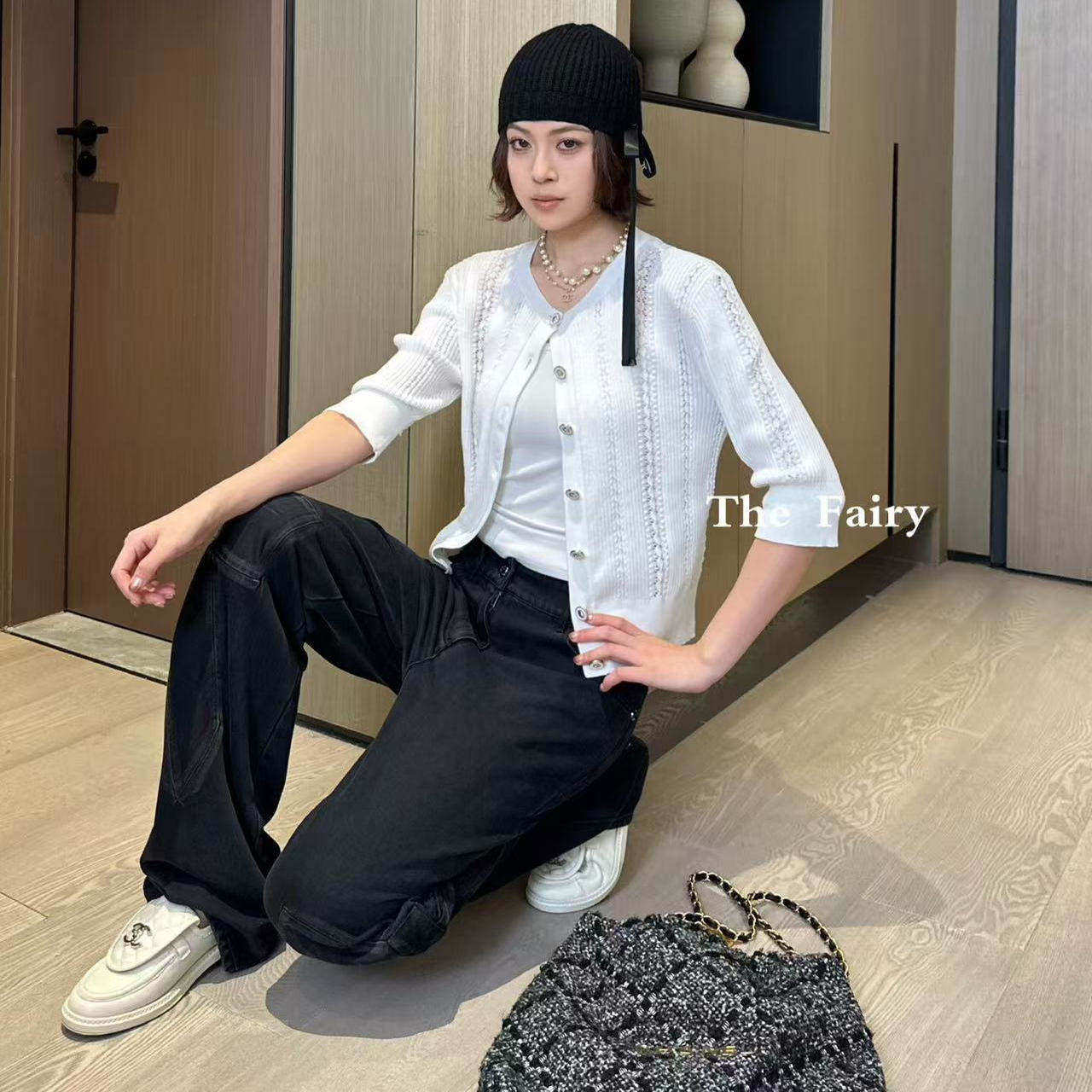 好漂亮好漂亮极简风V领针织开衫女短外套钮扣装饰冬季新款毛衣潮