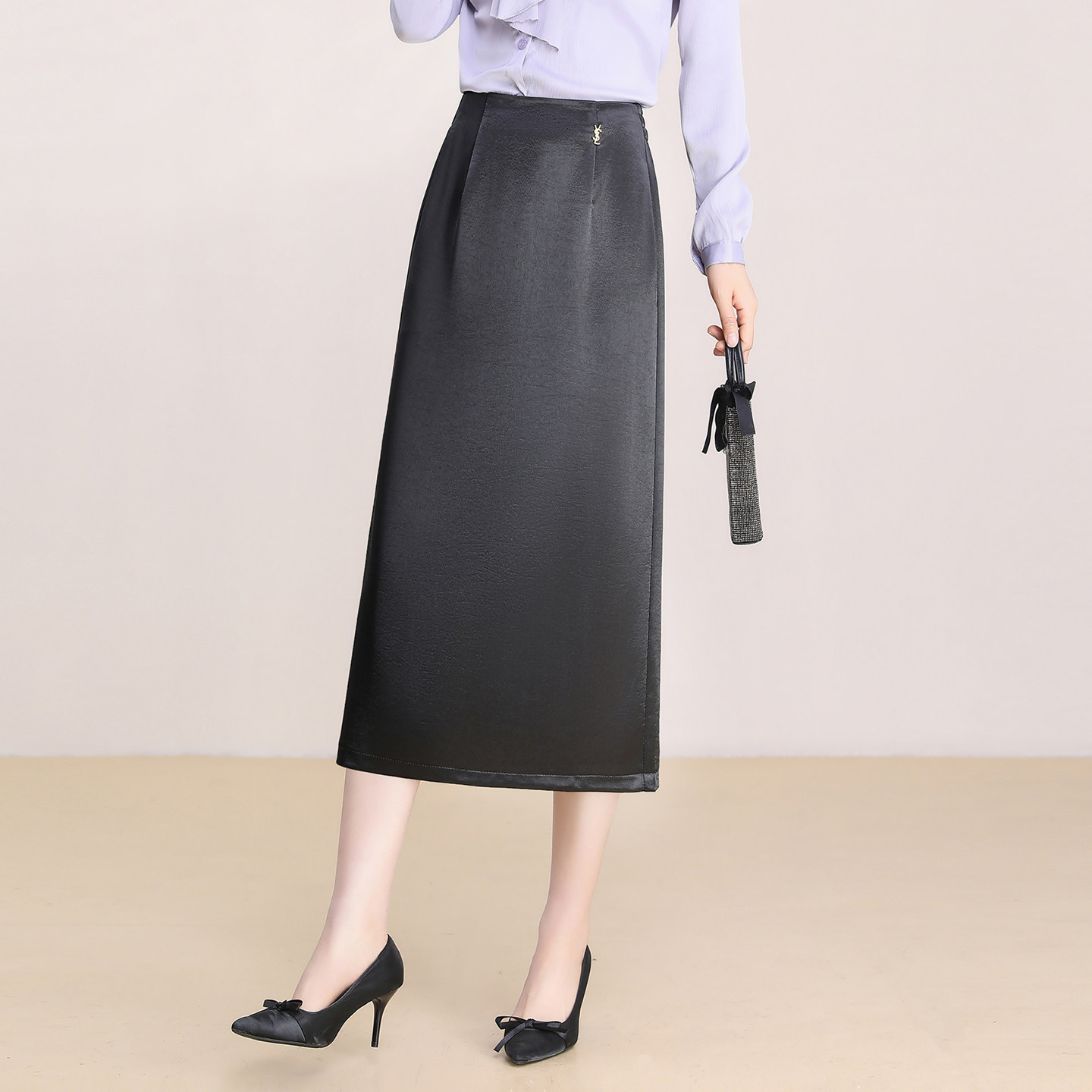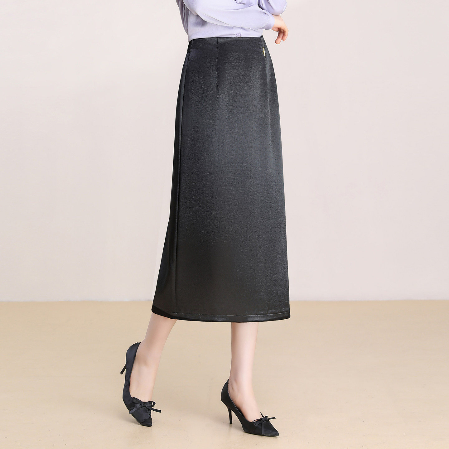 气质醋酸直筒裙半身裙女春季2026新款中长高腰通勤显瘦包臀一步裙