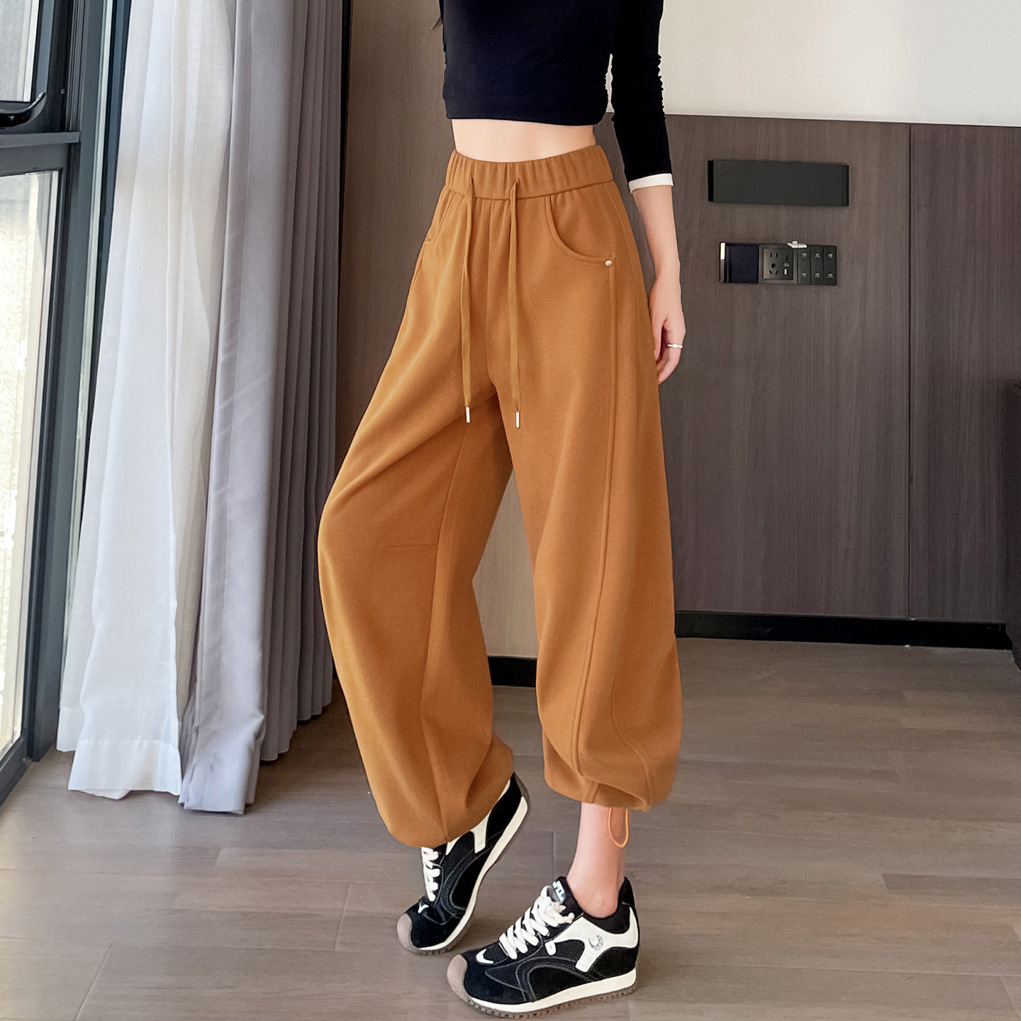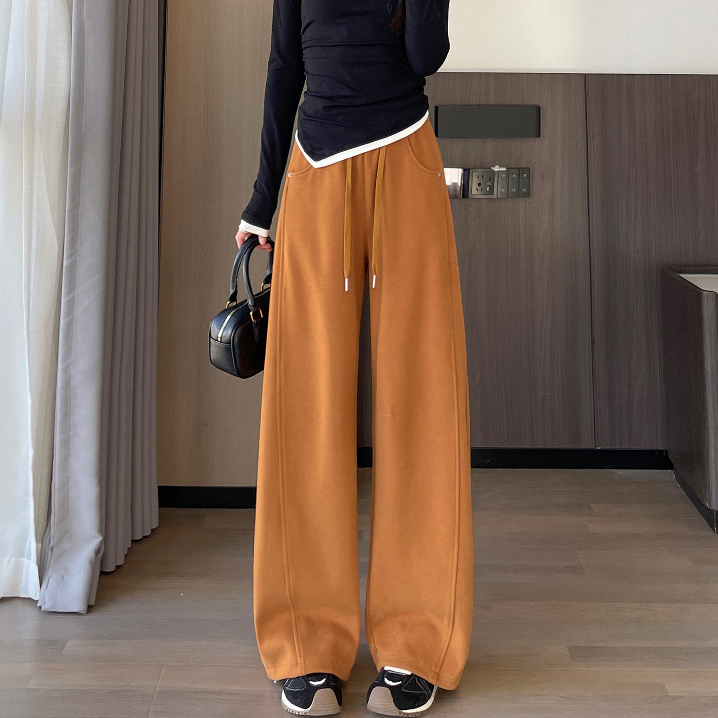 加长橙色阔腿运动裤女春秋新款高腰窄版香蕉镰刀直筒弯刀休闲卫裤