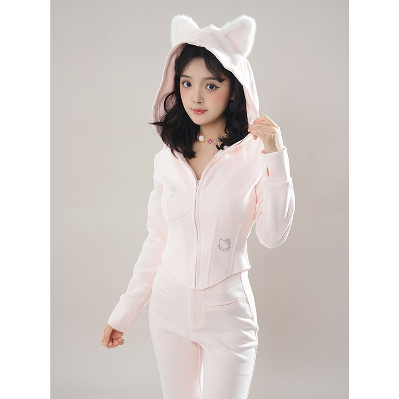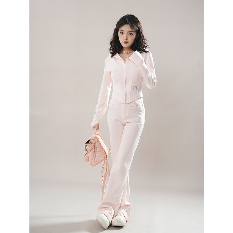 首页> 女装> 甜美修身鱼骨粉色运动休闲套装女春季2025新款短款卫衣长裤两件套