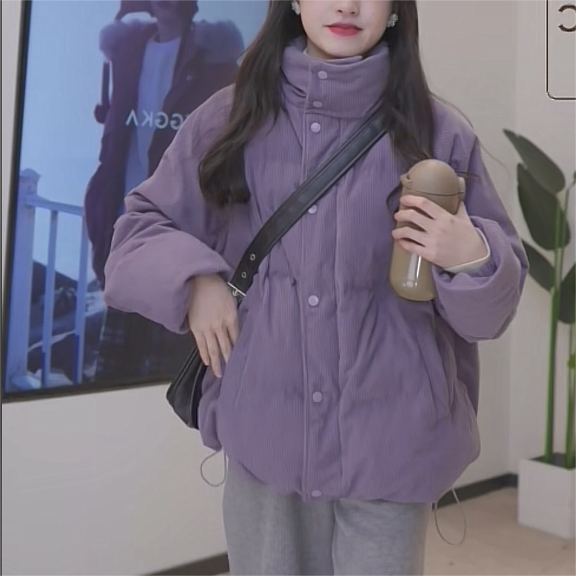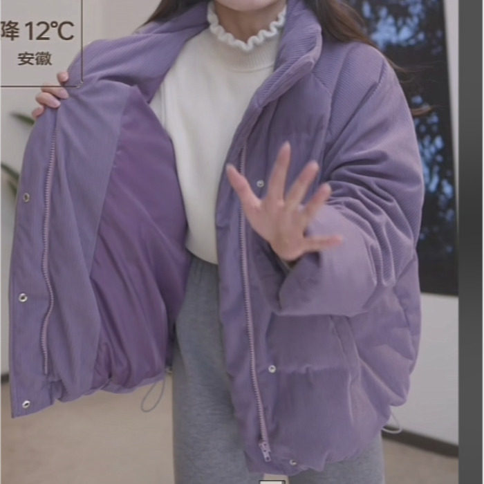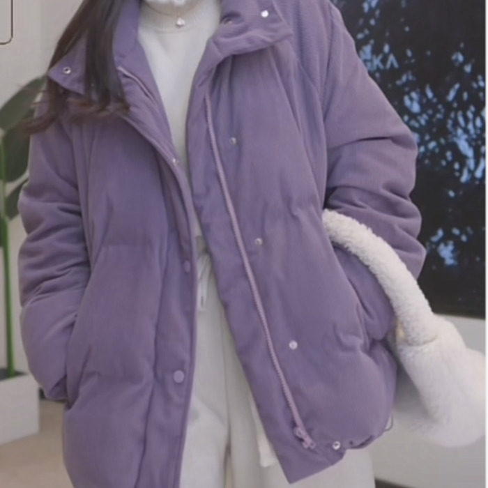 冬季紫色羽绒棉服女保暖加厚灯芯绒棉衣外套面包服立领棉袄