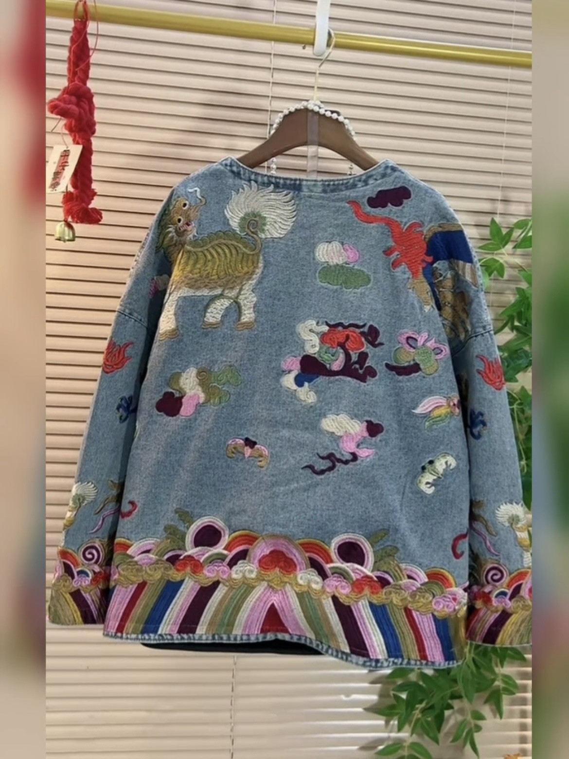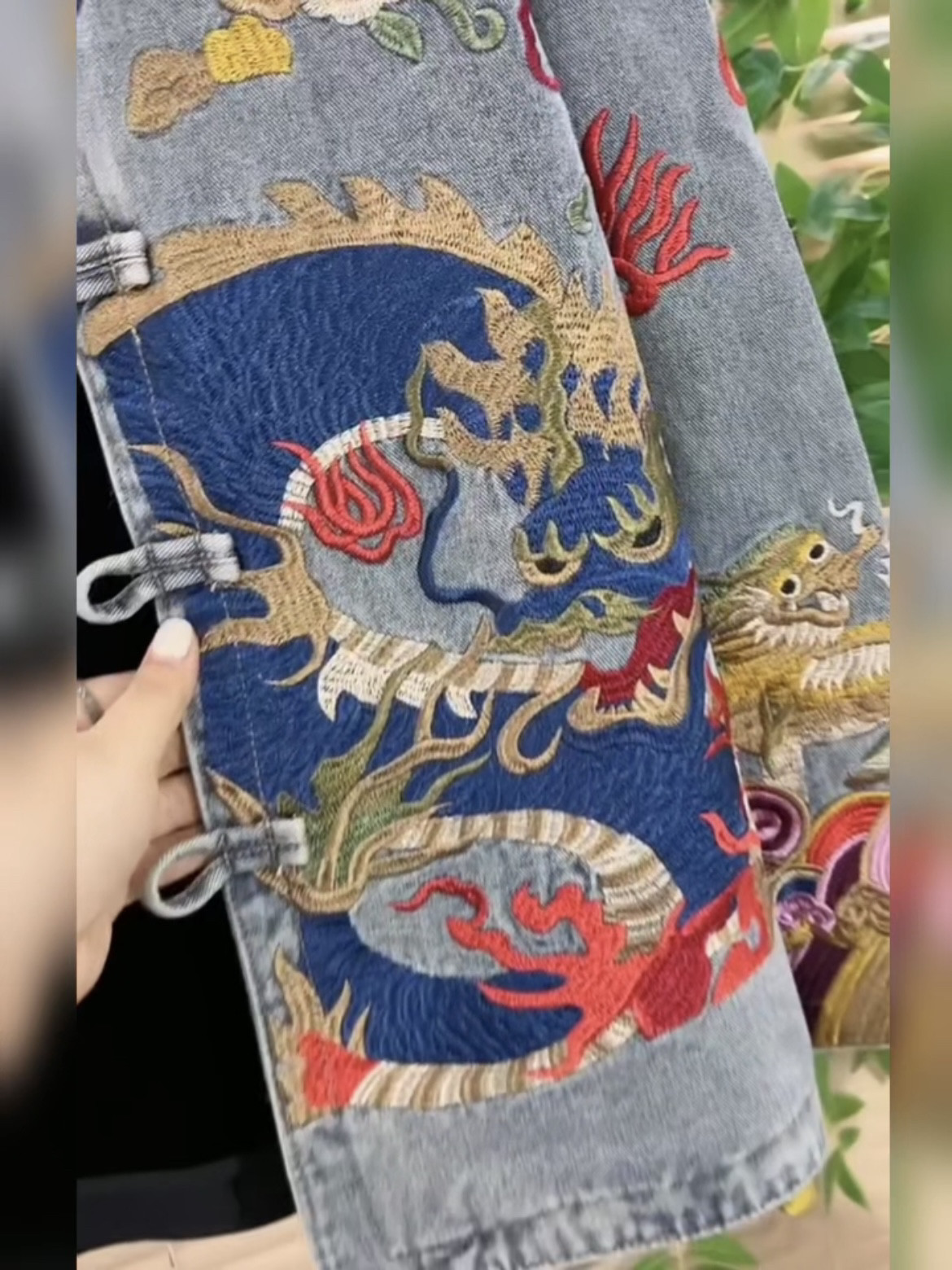 秋冬大码女装新中式国风盘扣刺绣牛仔外套宽松显瘦减龄小众上衣潮