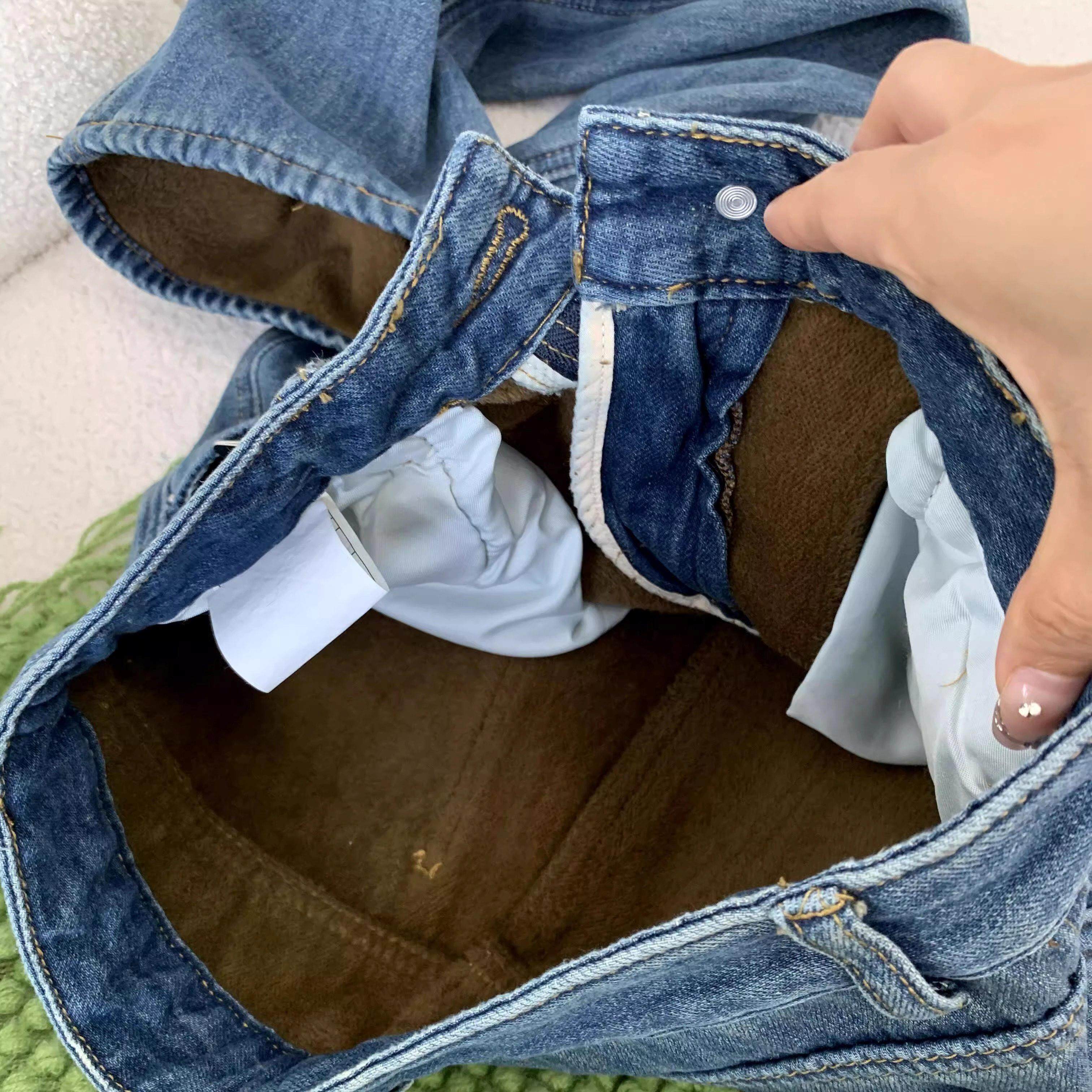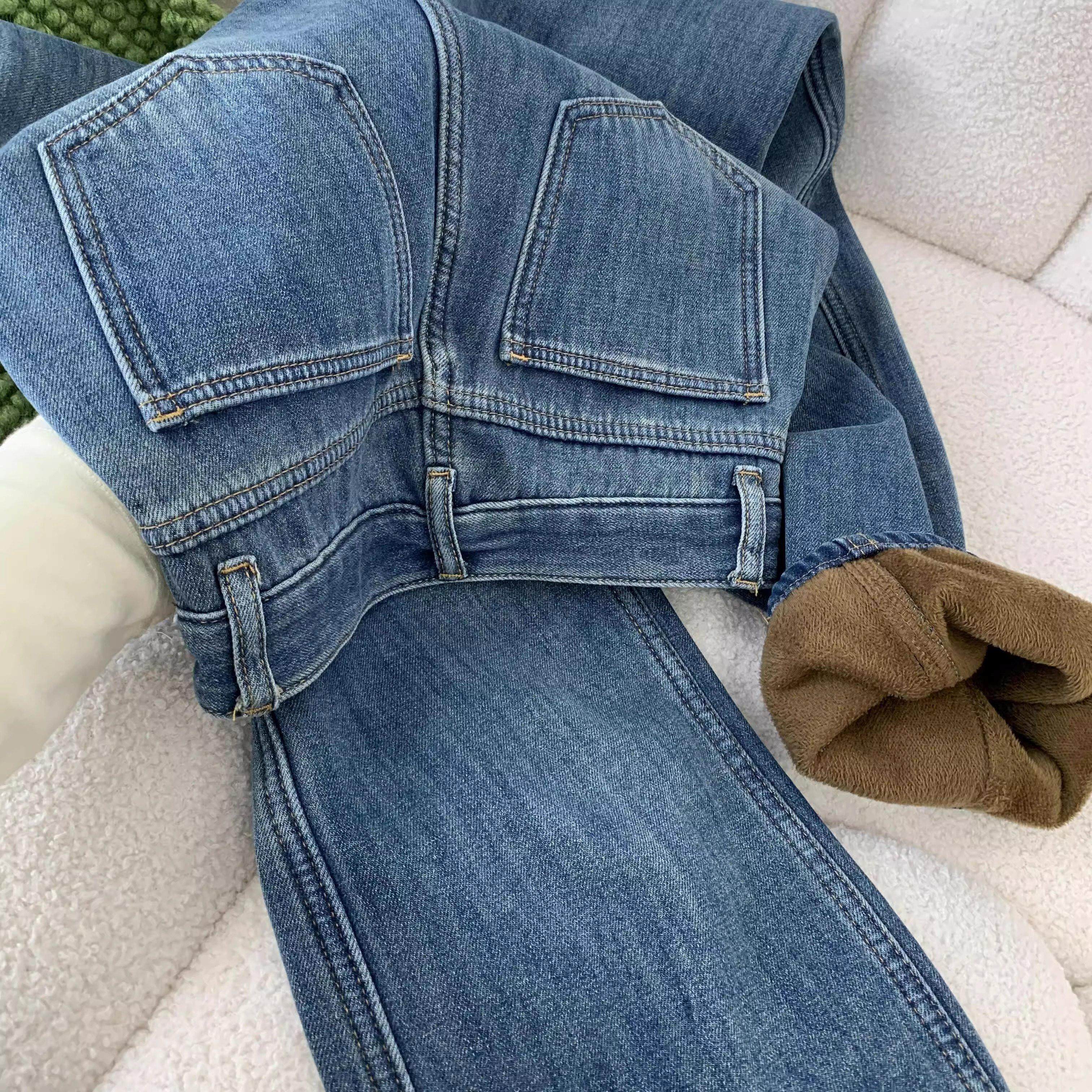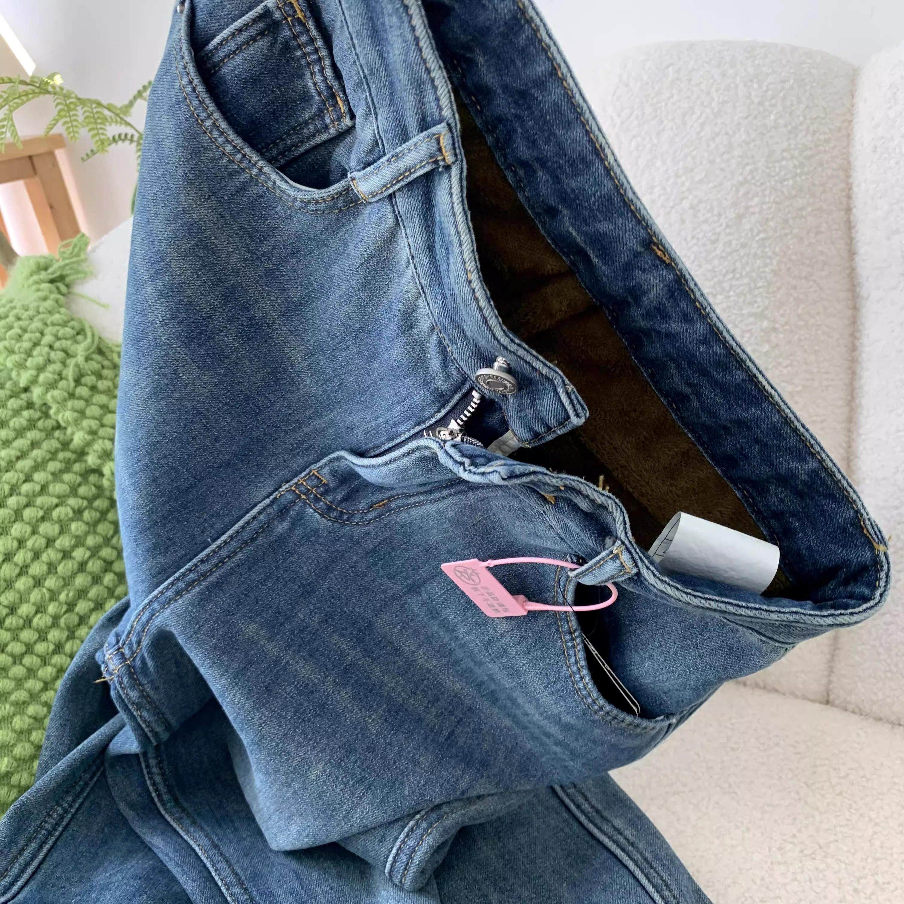 美式覆古蓝加绒加厚宽松直筒牛仔裤女秋冬新款高腰显瘦窄版阔腿裤