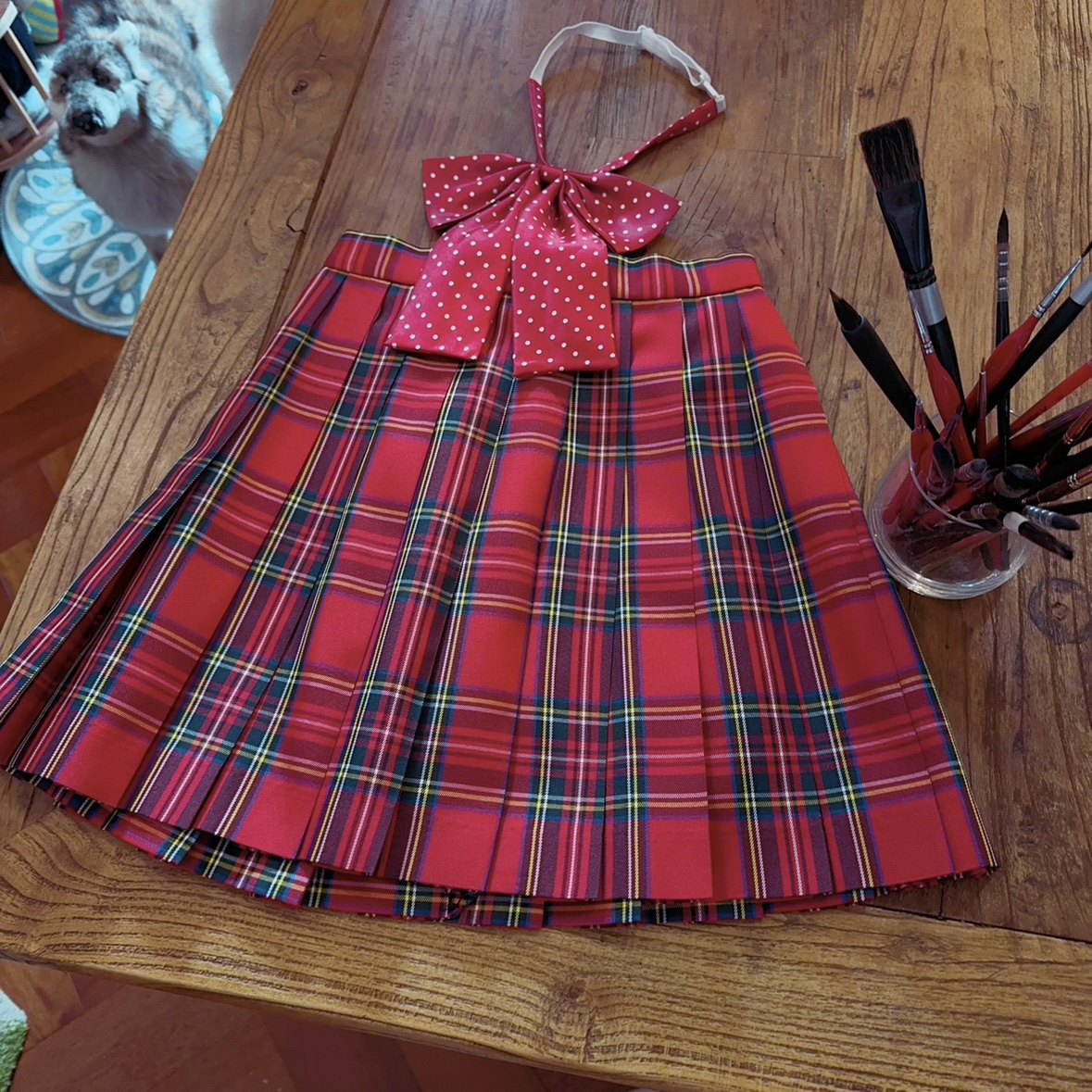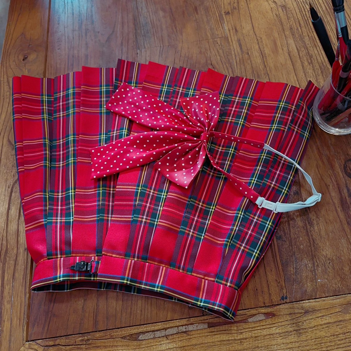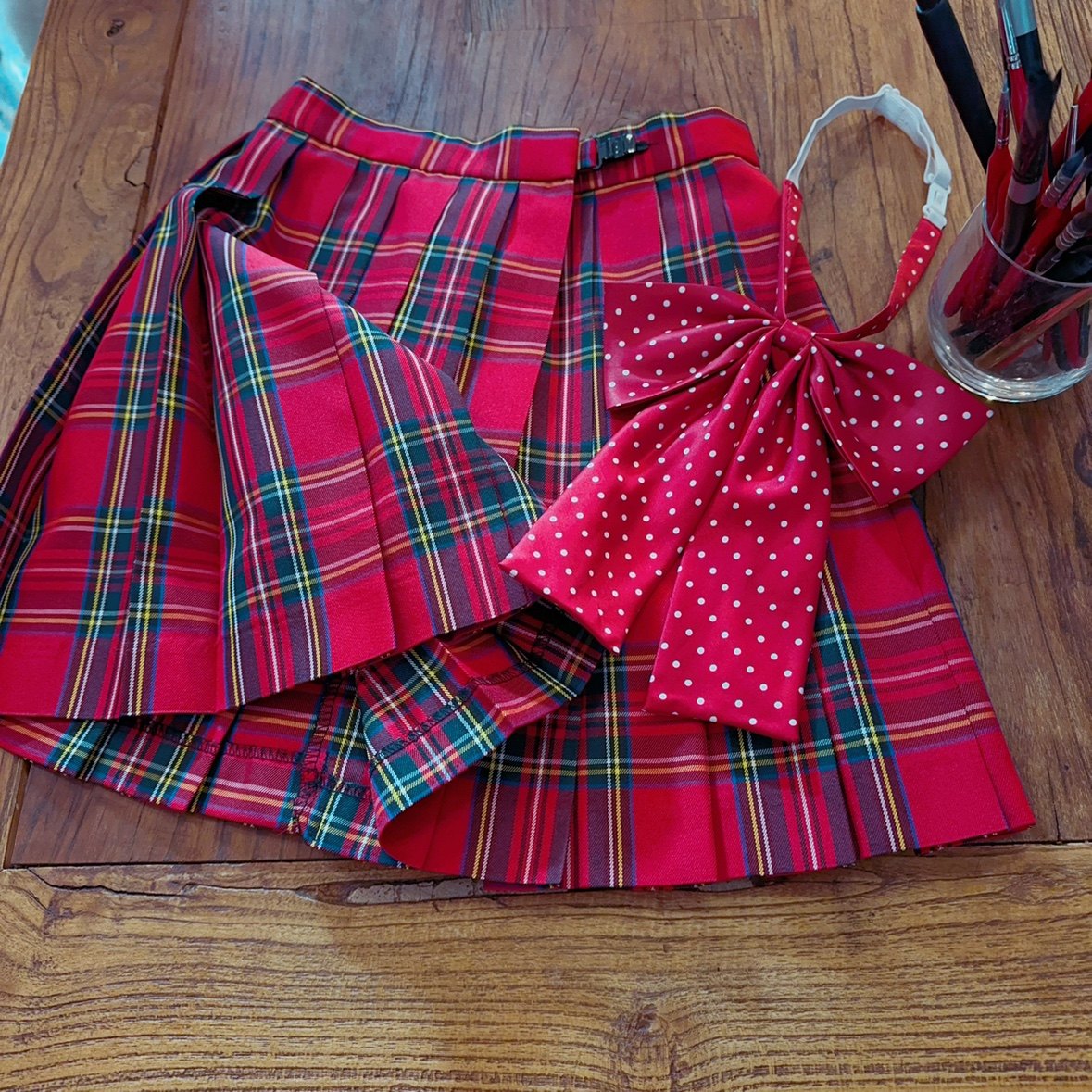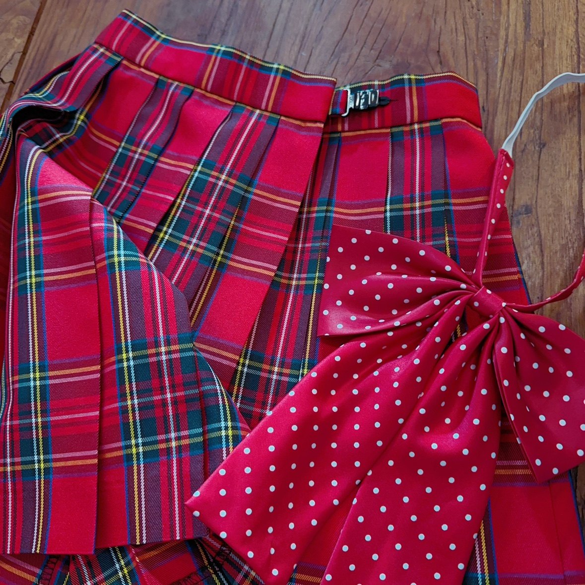 s码小码样裙 JK制服裙 日系学院风复古红色格子 风琴褶高腰半身裙