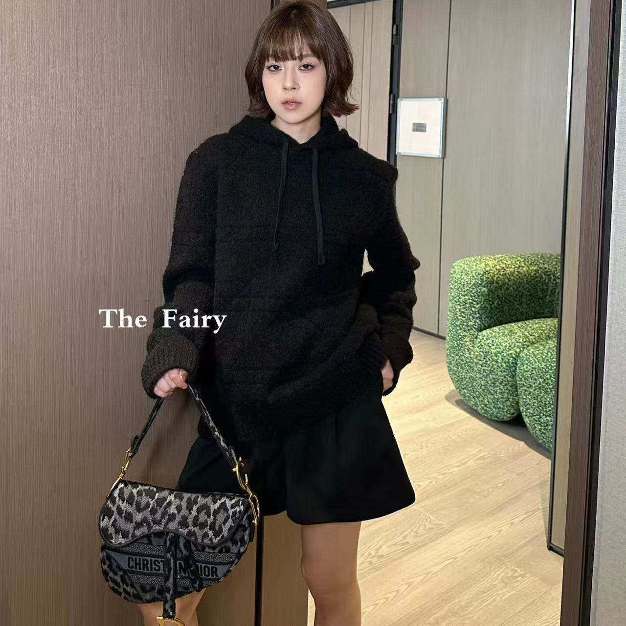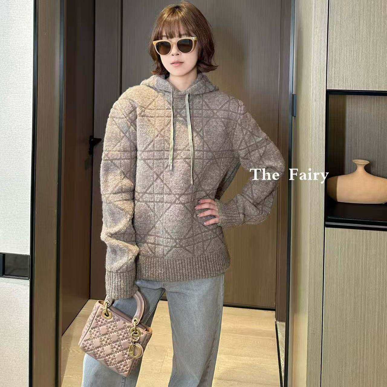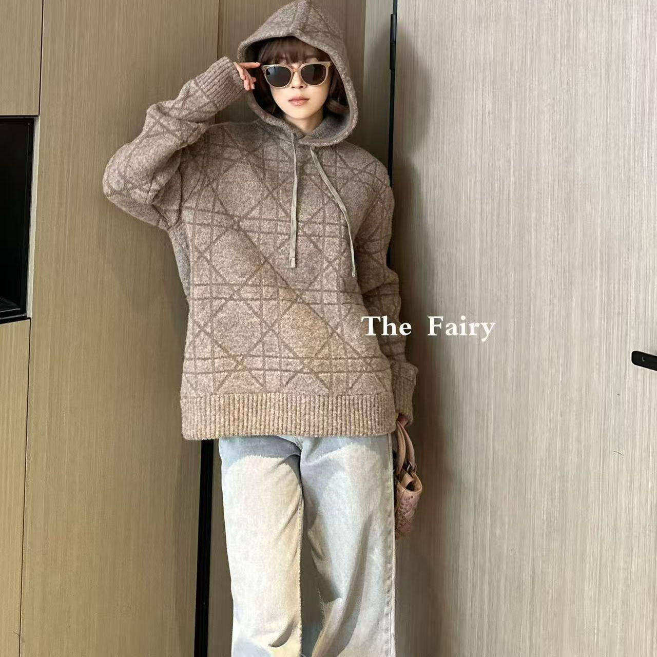 好漂亮腾格纹连帽羊毛针织套头衫女2025年冬季新款毛衣宽松时尚潮