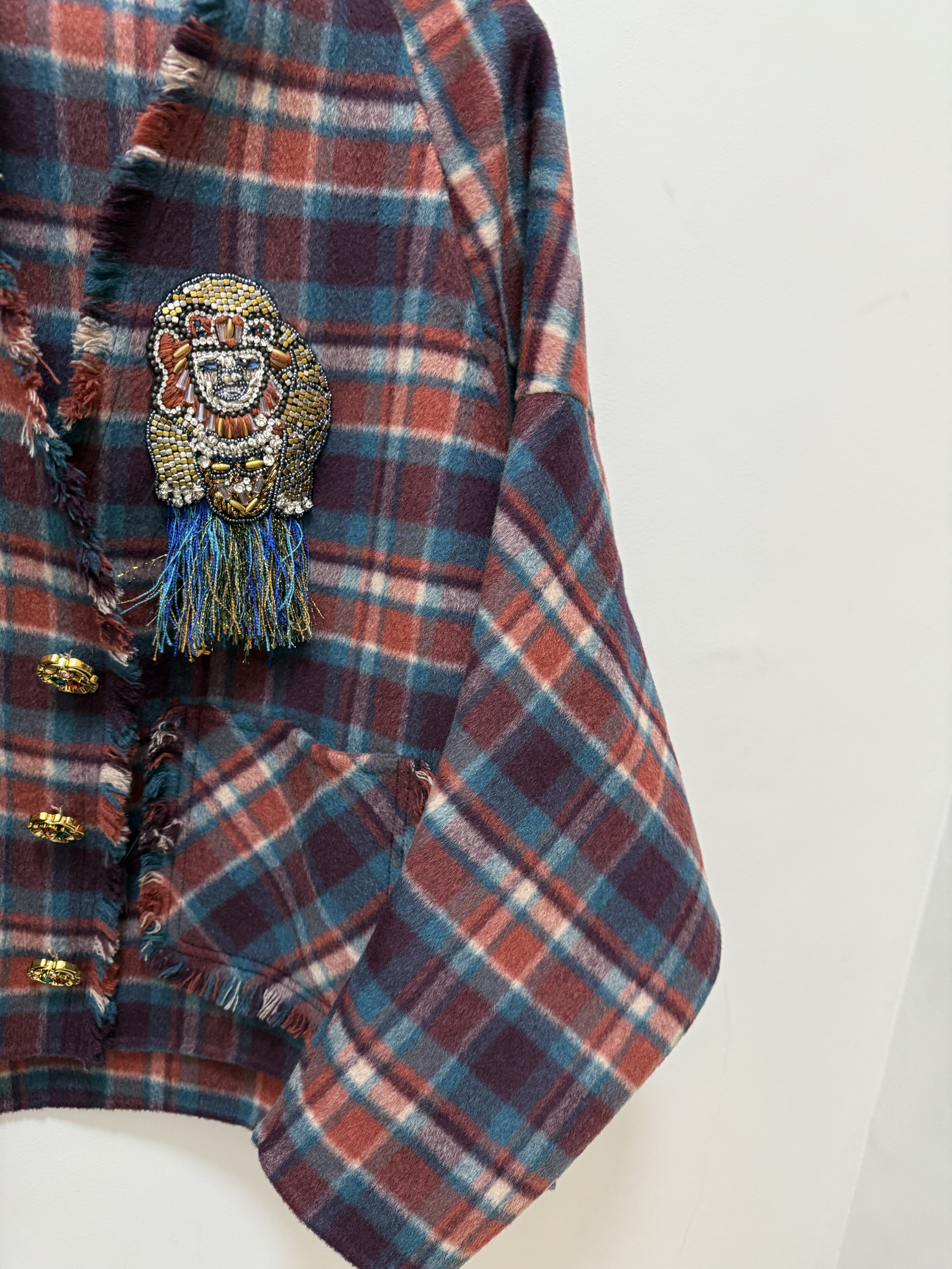设计感羊绒大衣裙子套装羊毛格子小香风外套高端女装新款