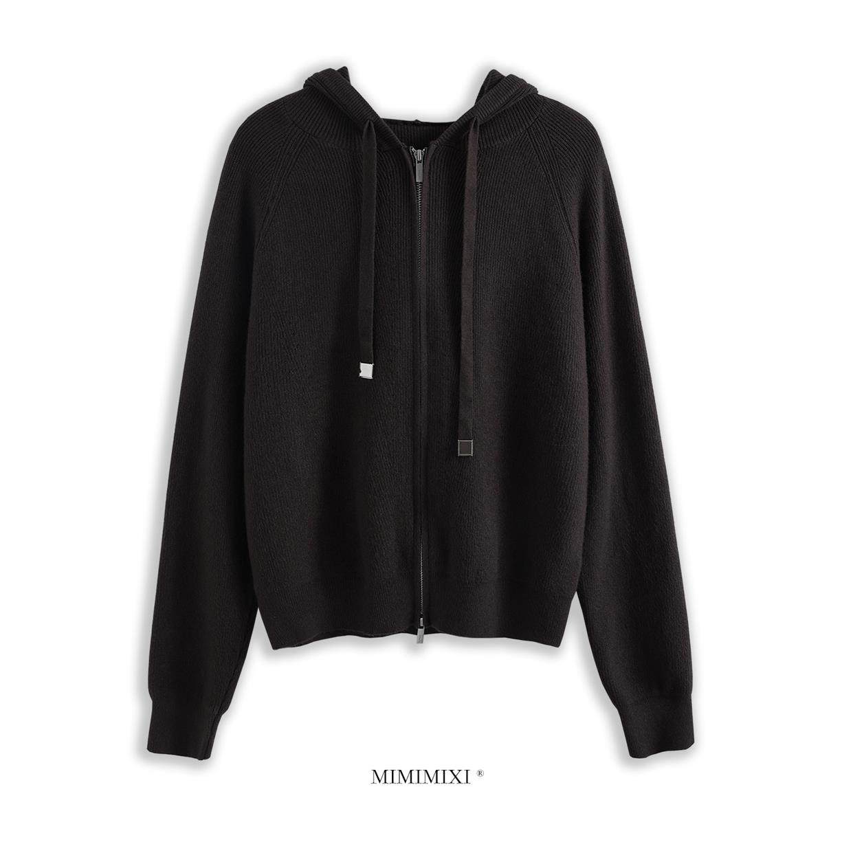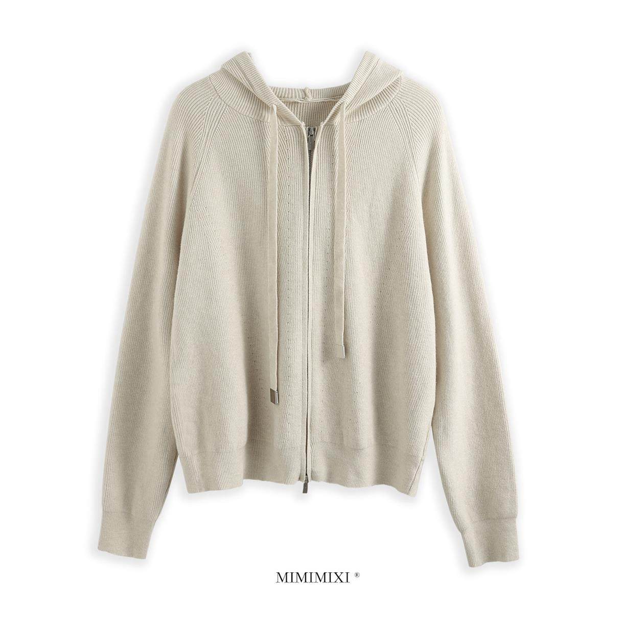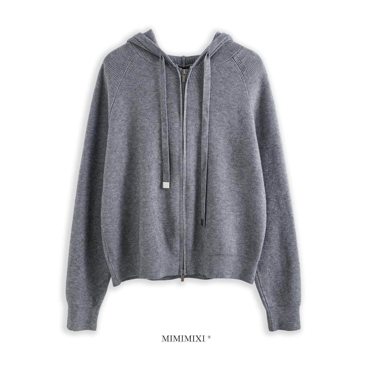 MIMIMIXI 老钱风连帽针织衫女秋冬上衣宽松休闲拉炼开衫毛衣外套