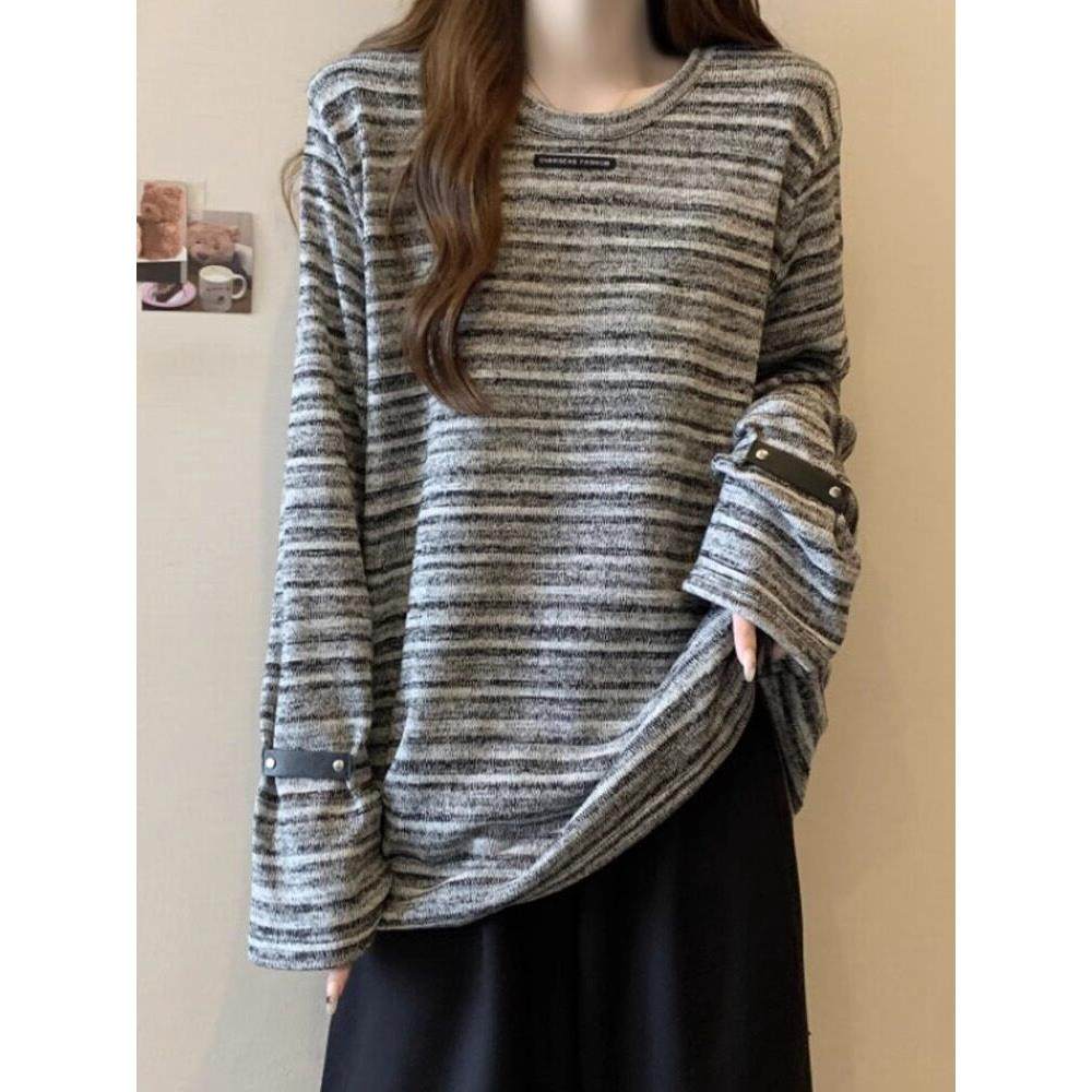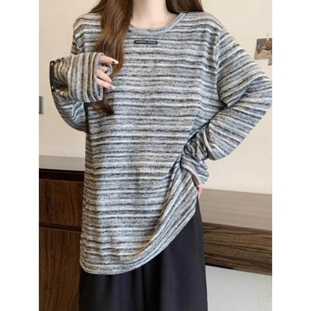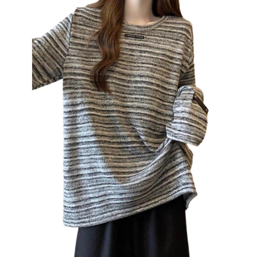首页> 女装> 渐变条纹长袖T恤女春秋2025新款大码女装慵懒风复古打底衫上衣女