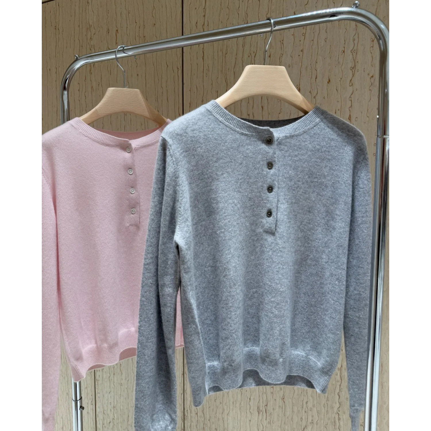 深圳南油高端女装2026春季新款极简风圆领纽扣宽松百搭毛针织衫女