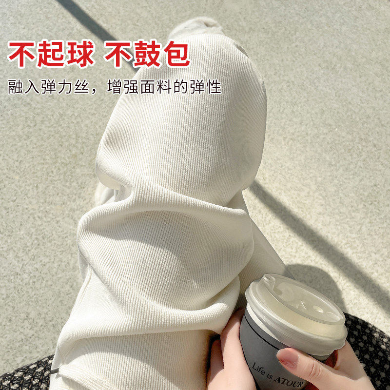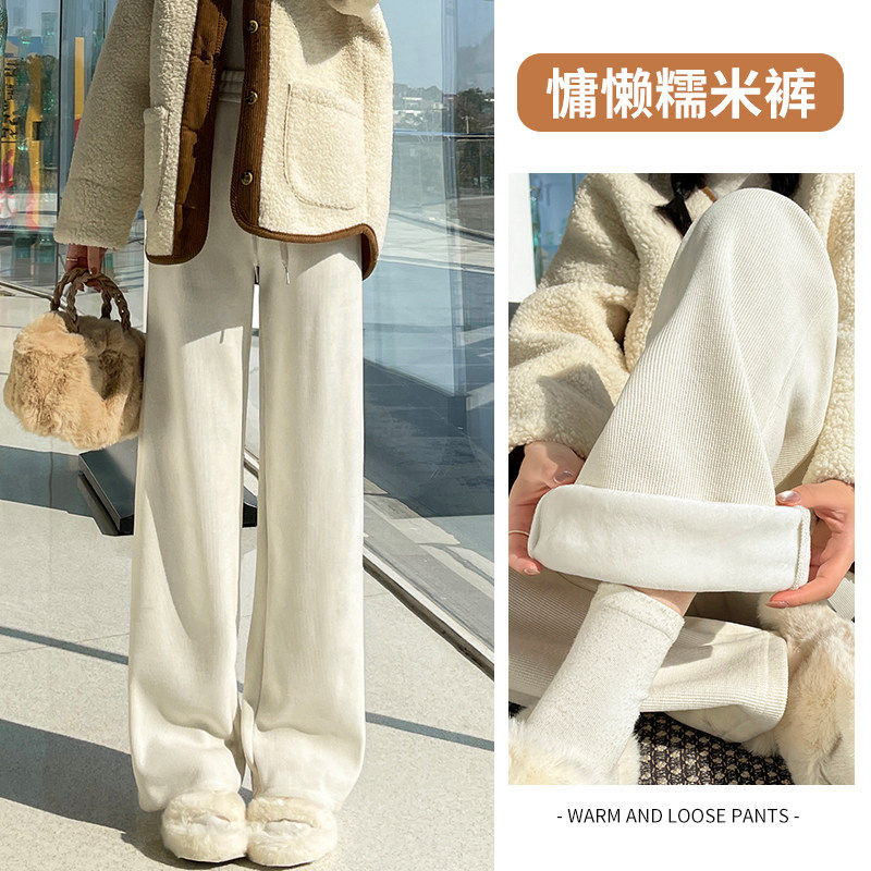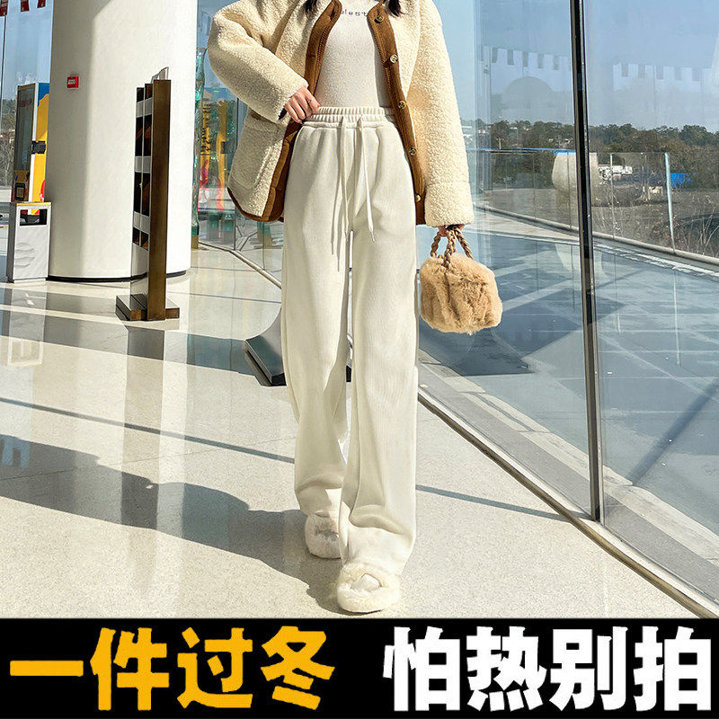 窄版羊羔绒阔腿裤女2024秋冬加绒垂感加厚保暖东北棉裤外穿直筒裤