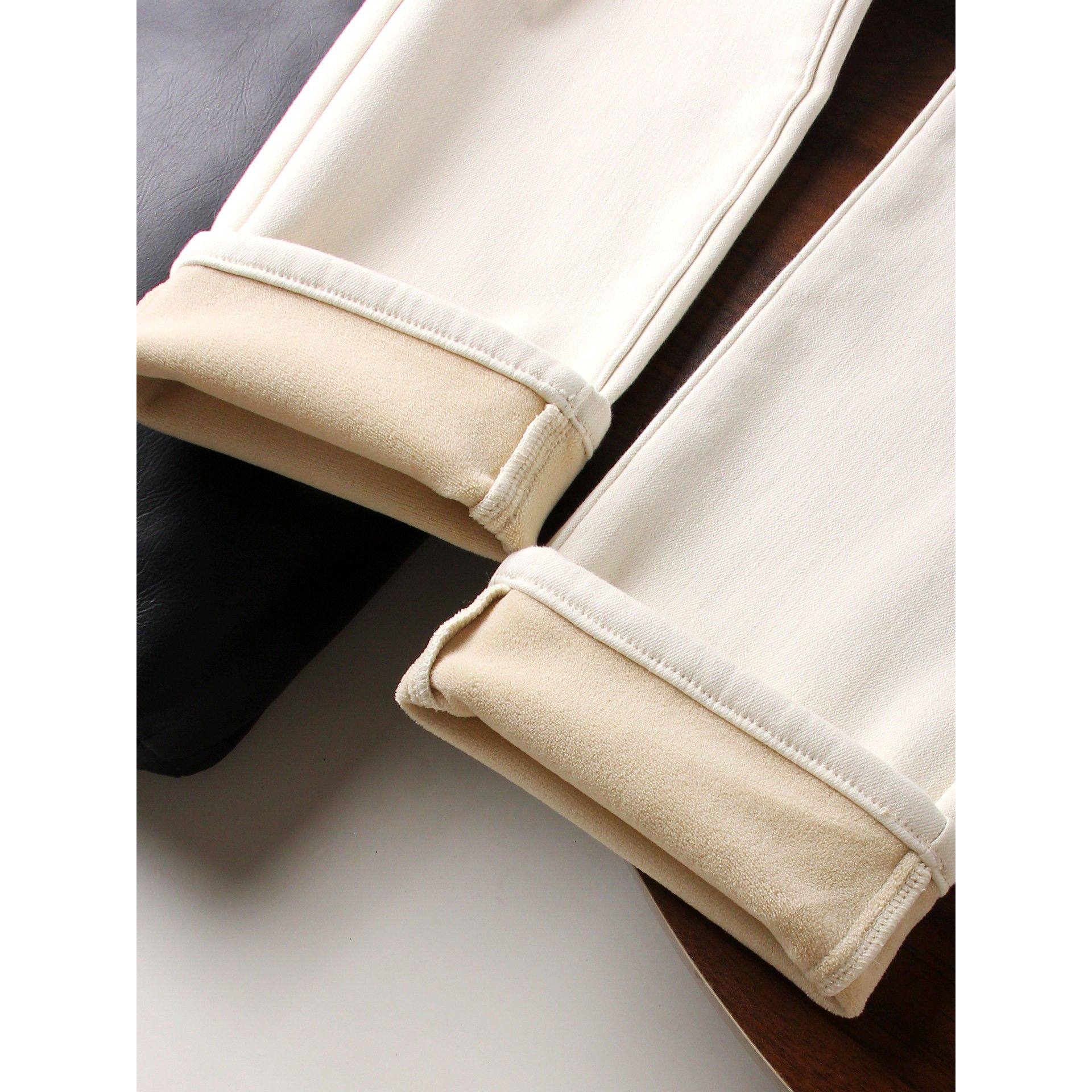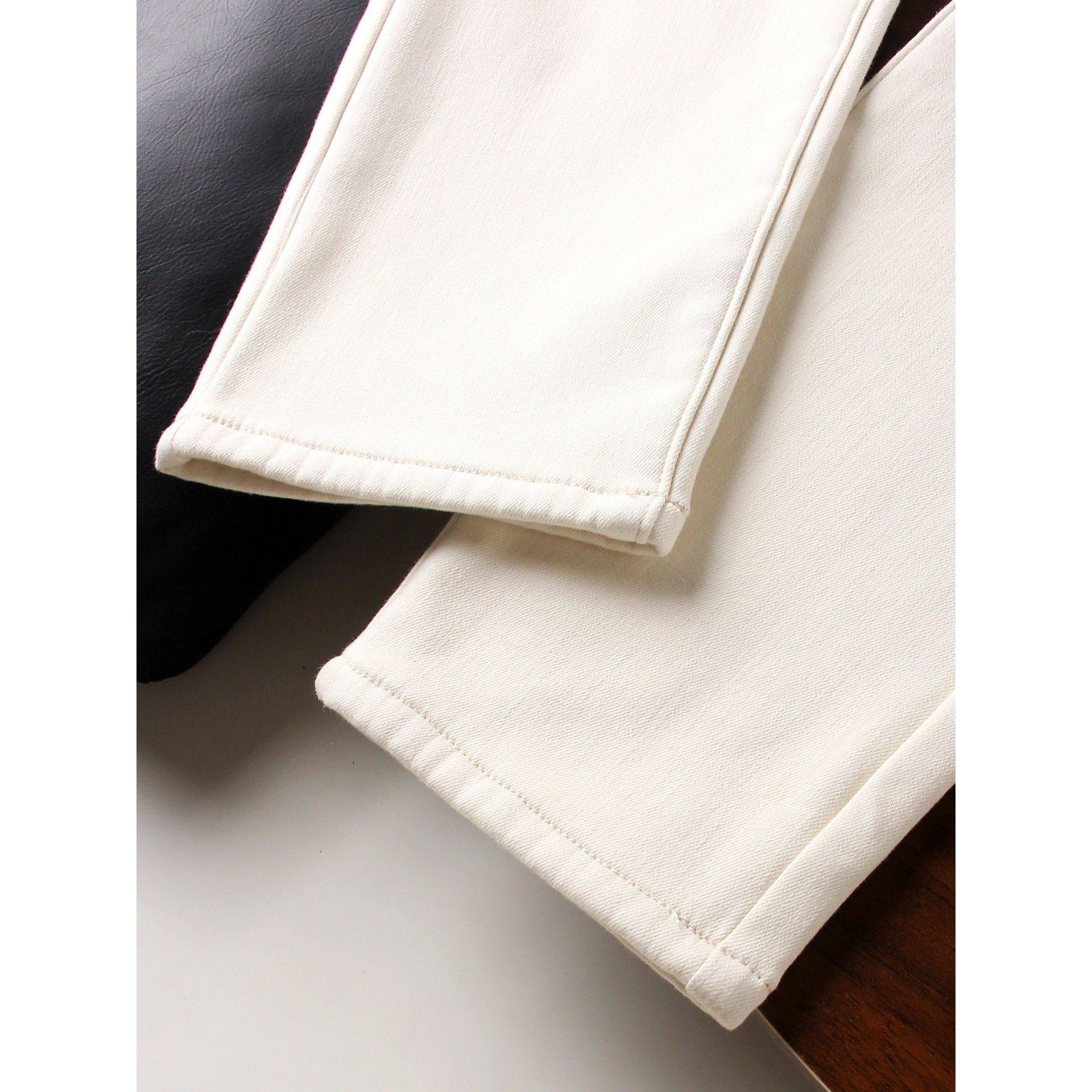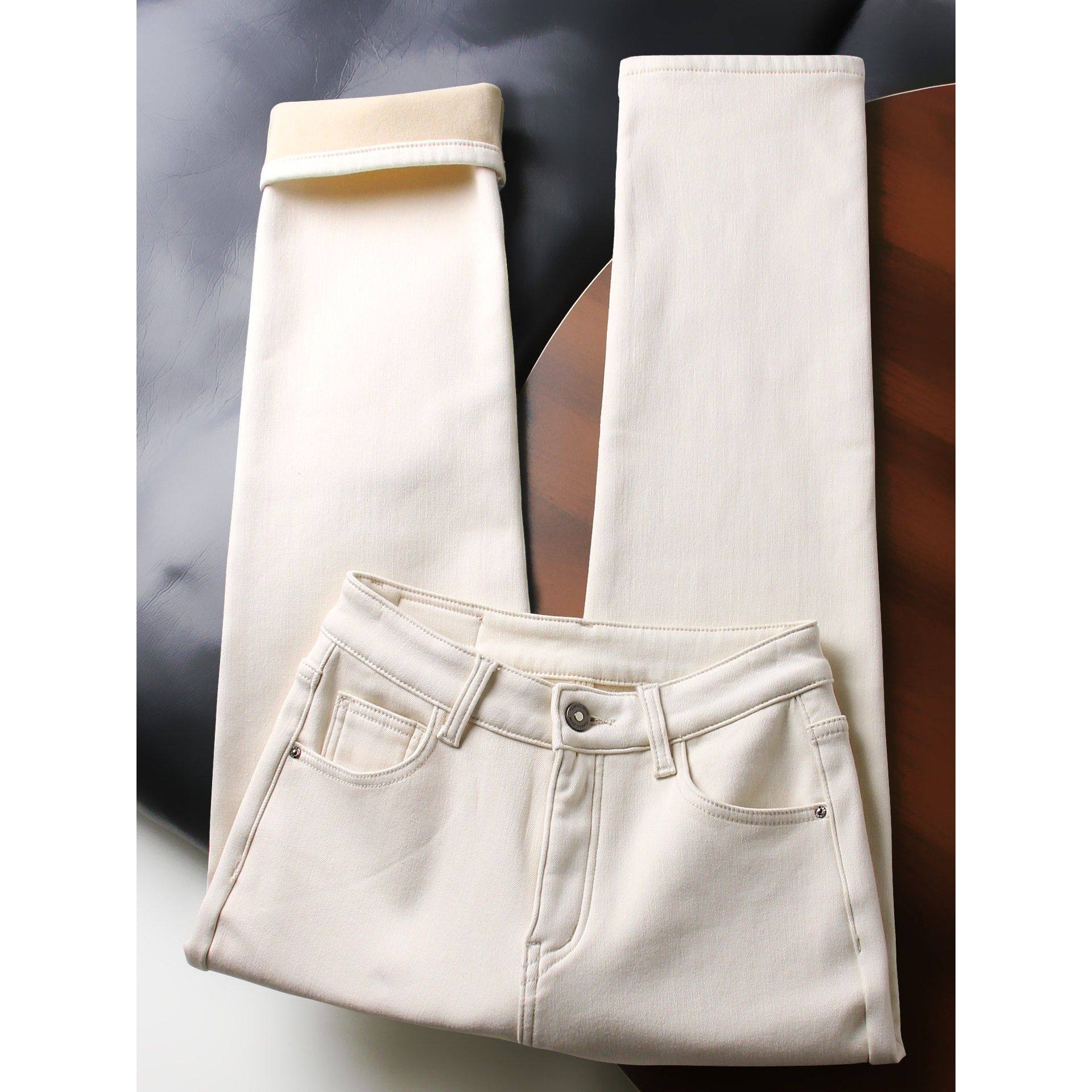米白直筒牛仔裤女秋冬季2025新款高腰弹力加厚小个子九分烟管裤子