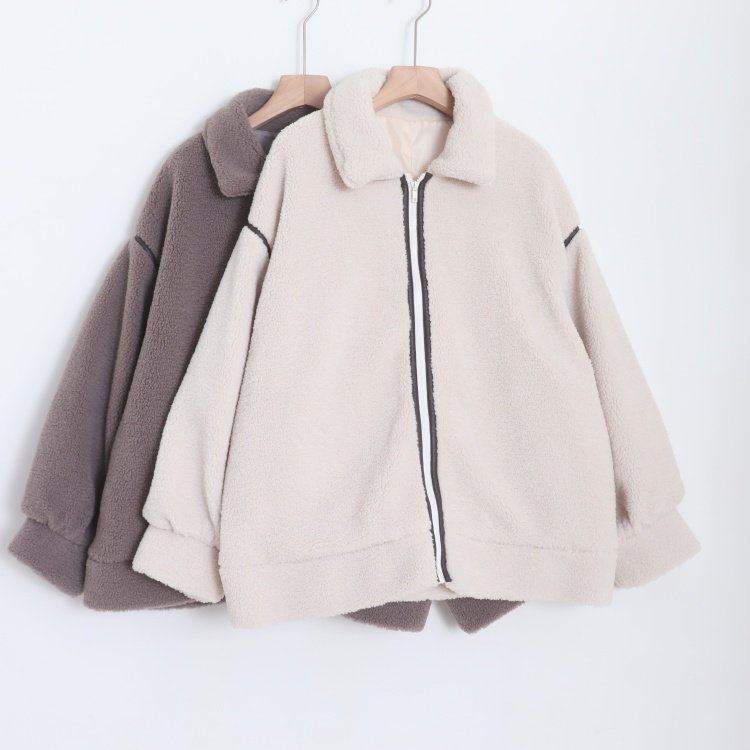 首页> 女装> D07075日单秋冬新款客供料拉链宽松保暖女休闲纯色羊羔毛外套大码