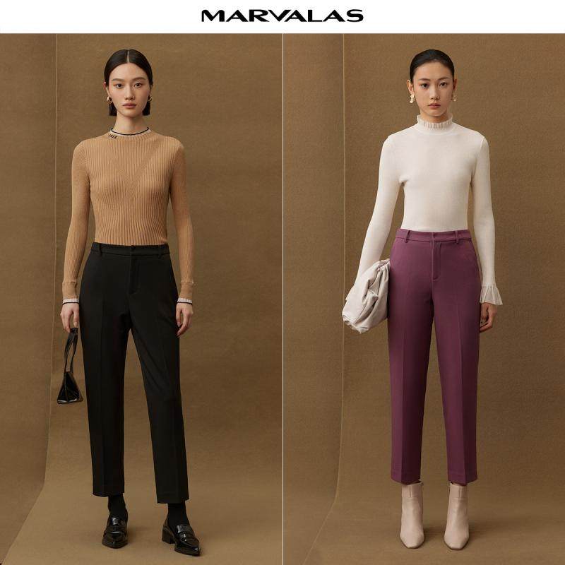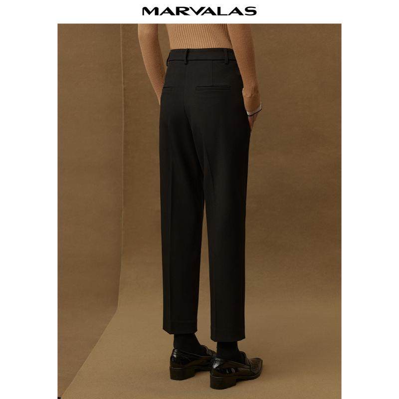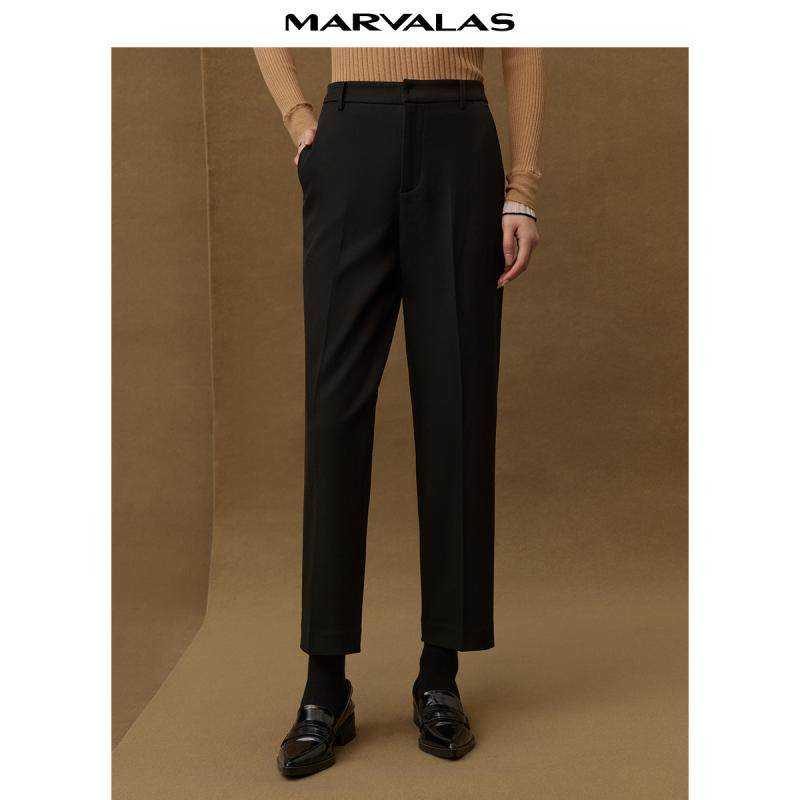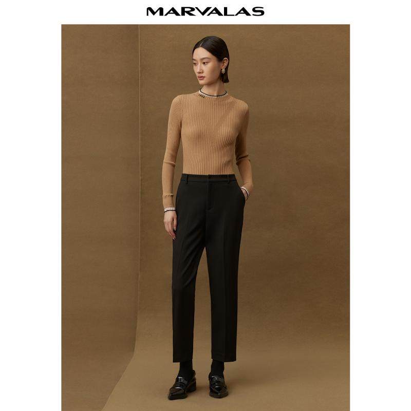 【粉丝专属】曼德诗纯色高腰铅笔裤2024冬季新品简约百搭精纺OL风