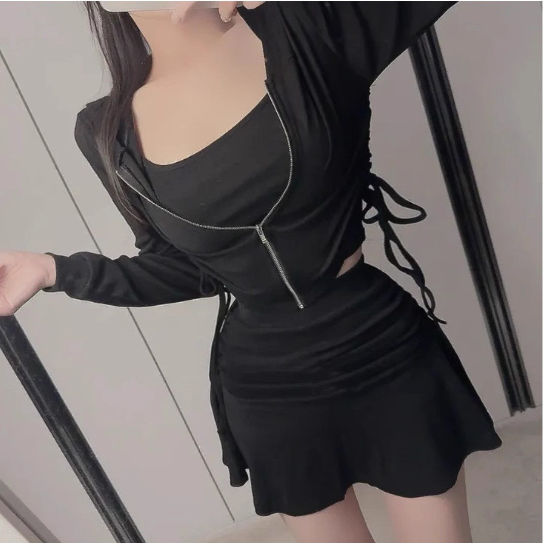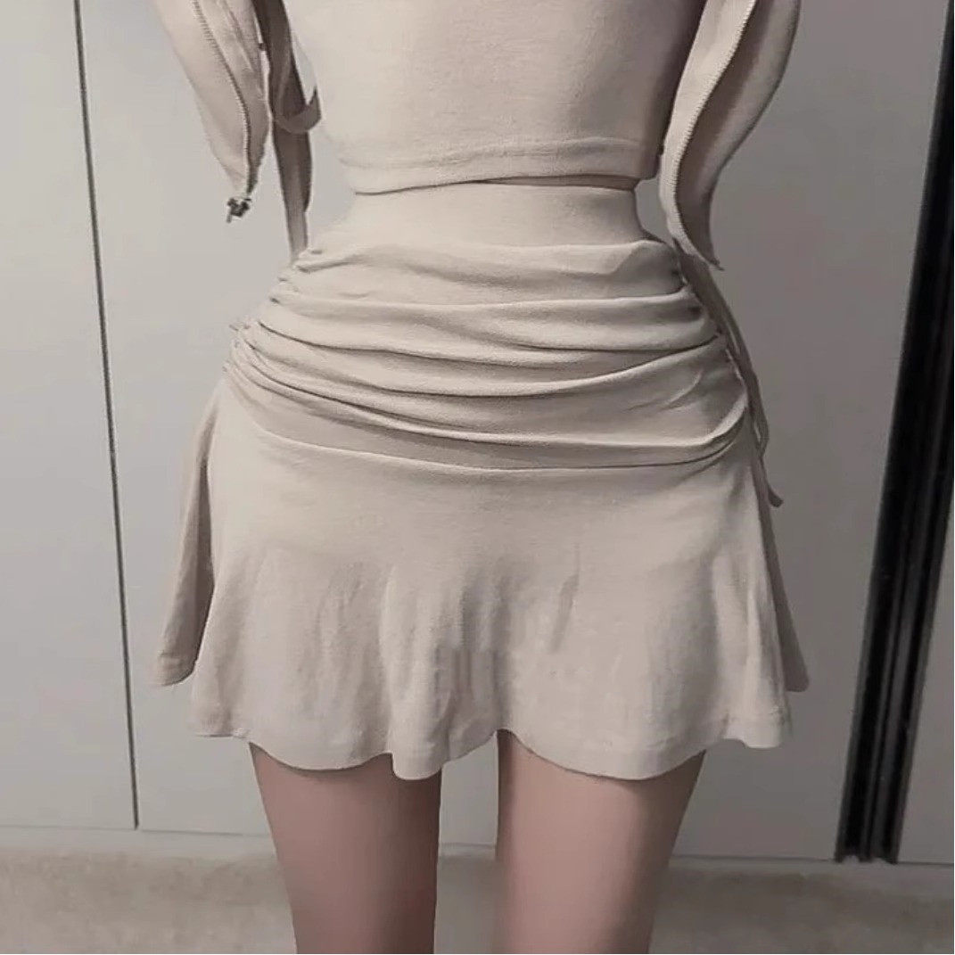 韩国东大门新款气质高腰褶皱百褶包臀半身裙女修身显腿长性感短裙