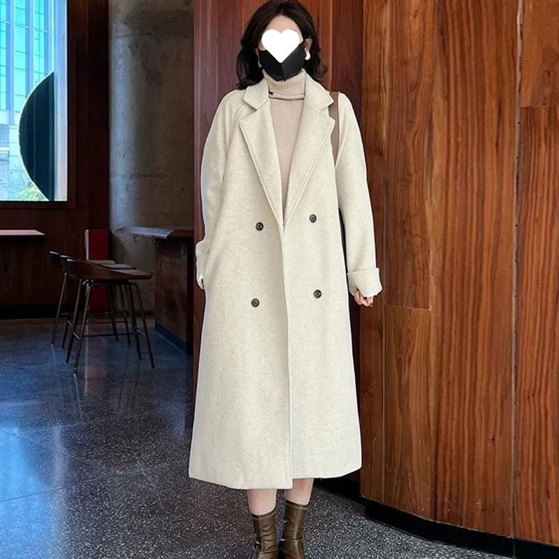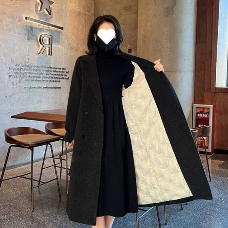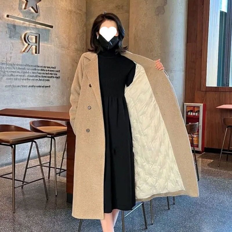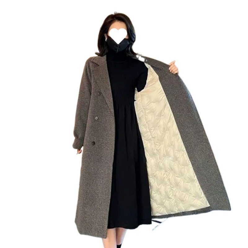 2024新款冬季白鸭绒呢子大衣长款宽松高级感加厚羽绒毛呢外套女N