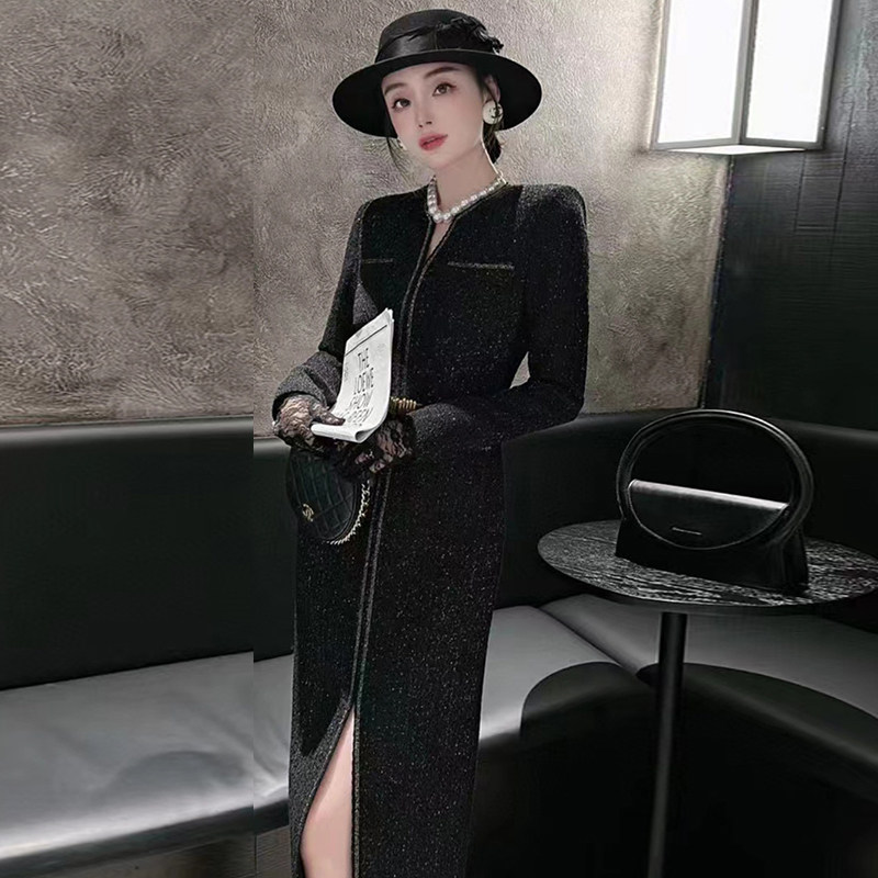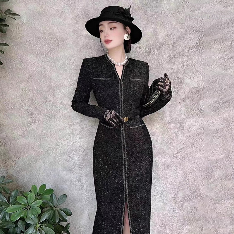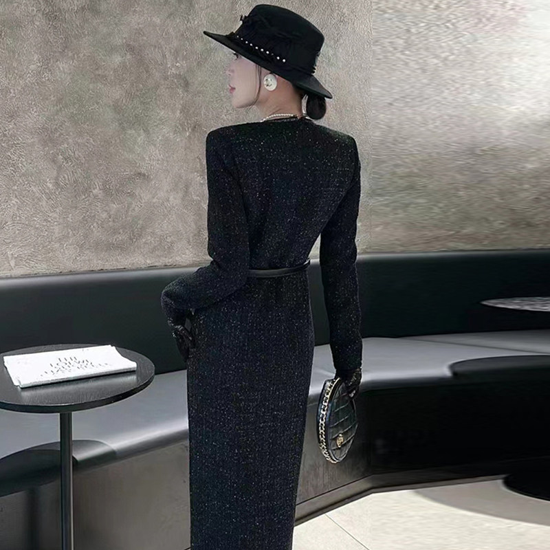 有里布气质小香风高级感包臀裙2025新款修身黑色内搭连衣裙女2767