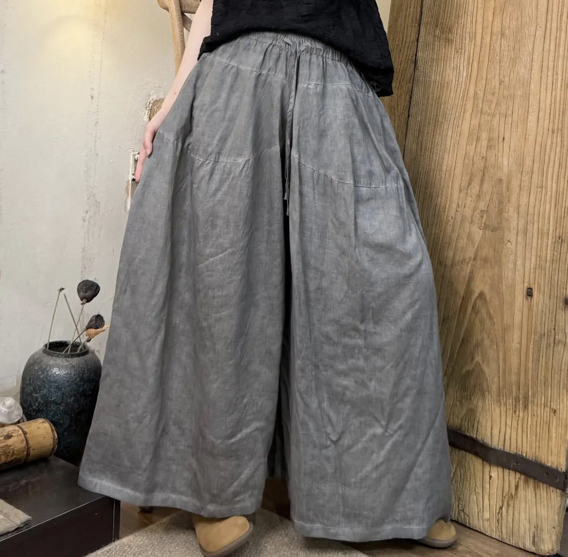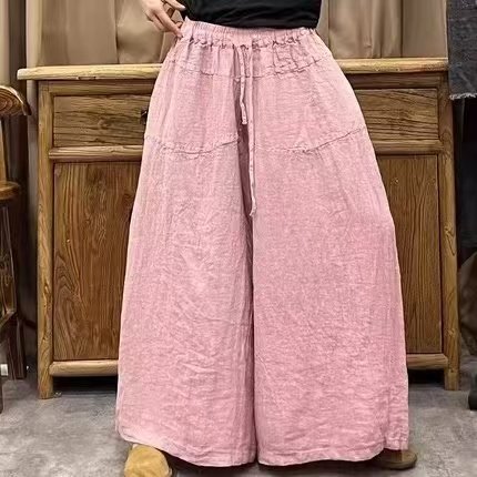 纯亚麻夏季复古休闲裙裤(长95)
