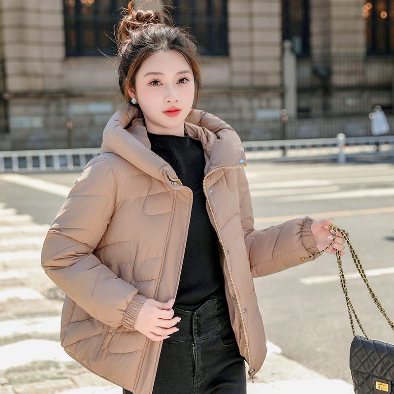 冬季羽绒棉棉衣女保暖棉服外套2024新款时尚休闲纯色连帽短款上衣