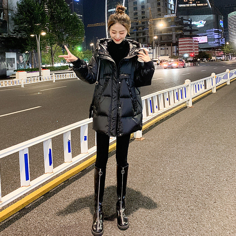 大码棉衣女冬中长款200斤显瘦亮面免洗羽绒棉服胖mm韩版棉袄宽松