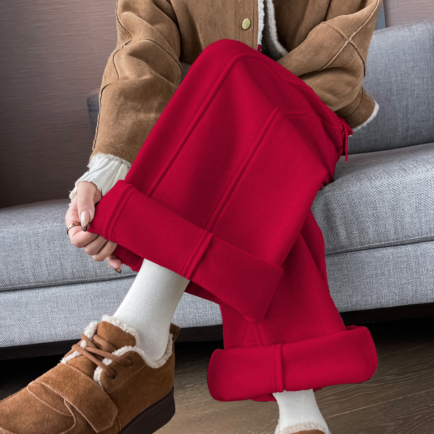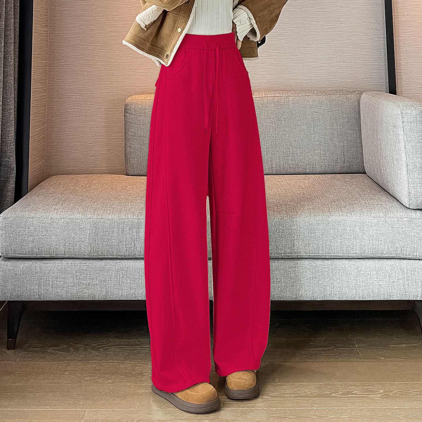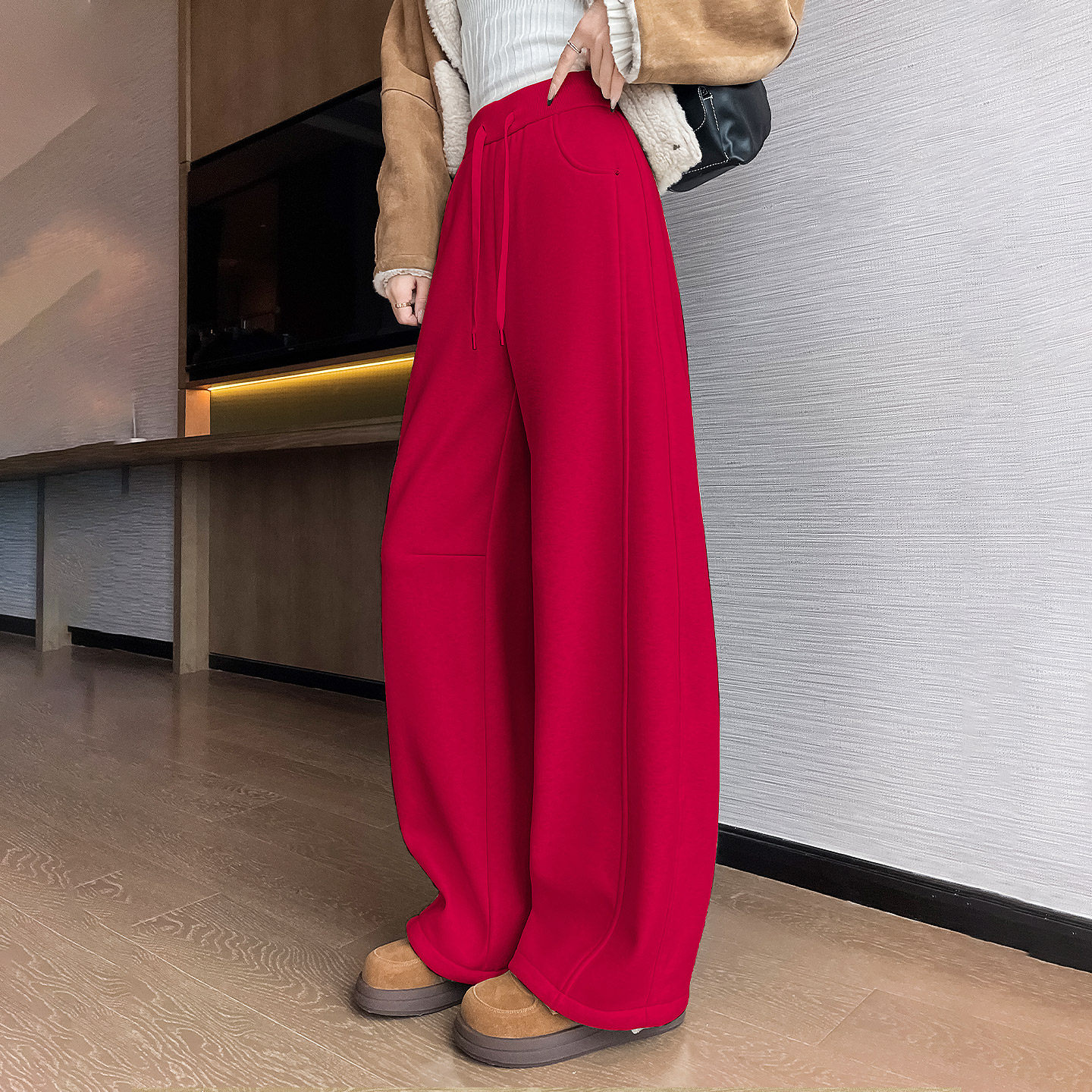 首页> 女装> 大红色加长秋冬加绒卫裤弯刀裤女抽绳两穿束脚加厚宽松休闲阔腿裤