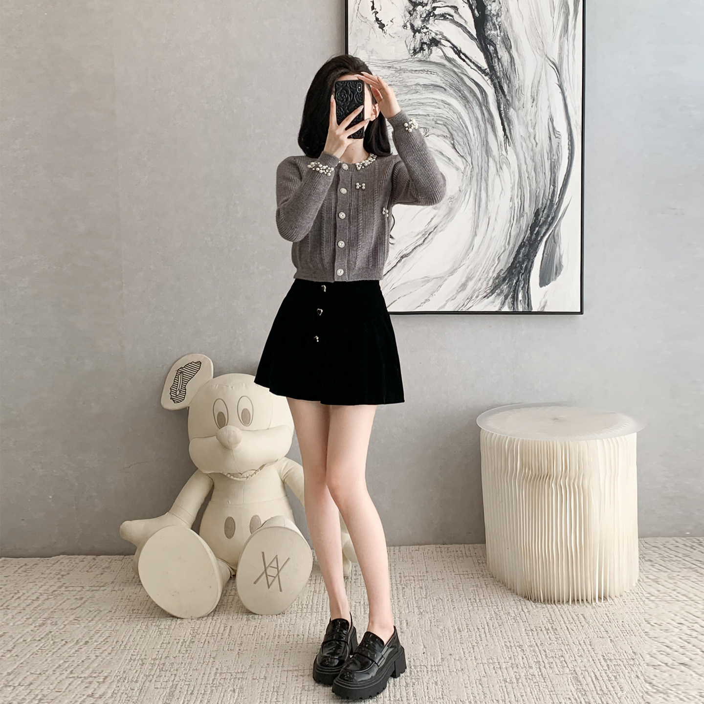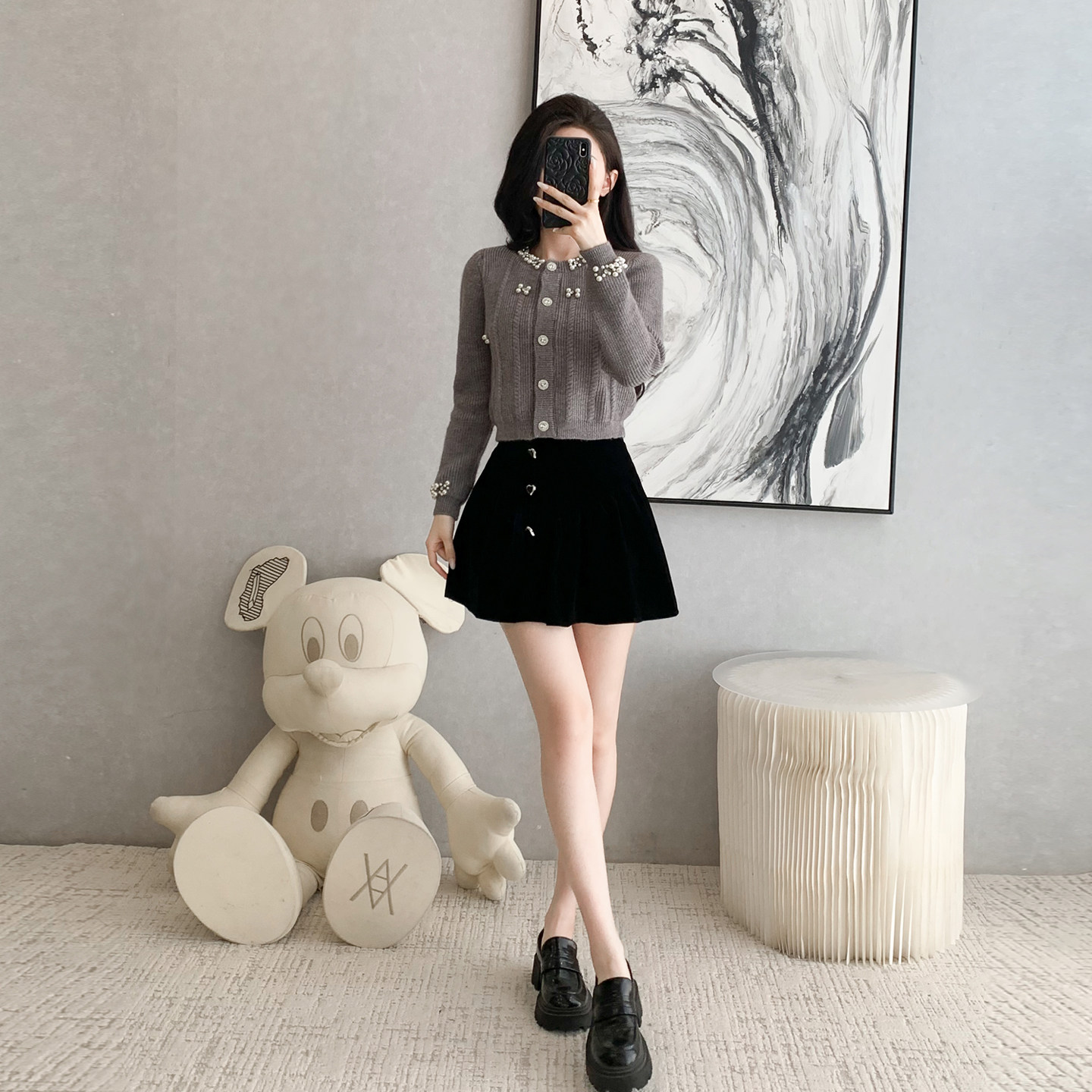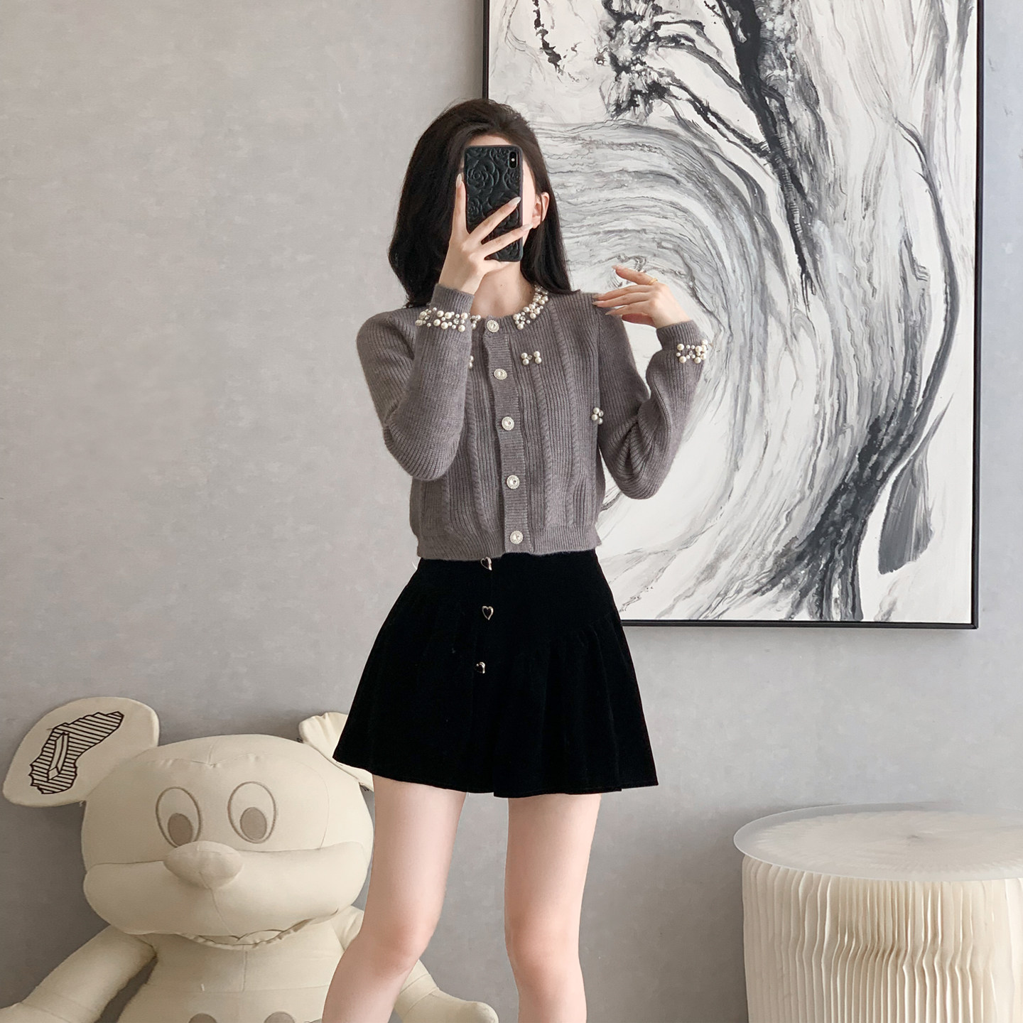 首页> 女装> 小香风时尚套装女秋冬新款短外套钉珠针织开衫半身裙两件套小个子