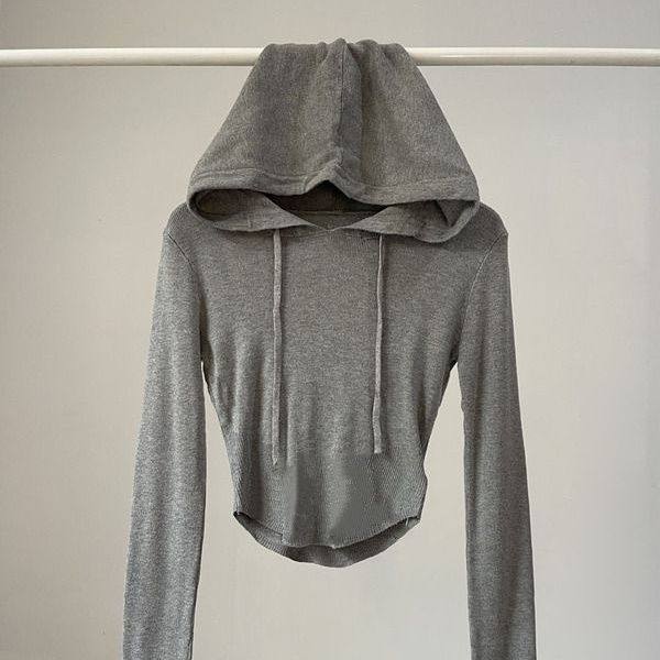 首页> 女装> 新款辣妹纯色修身长袖套头连帽卫衣女街头高腰显瘦露脐短上衣