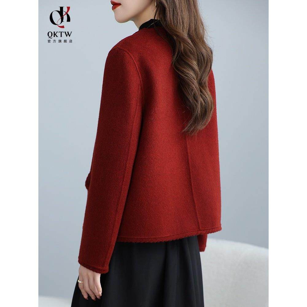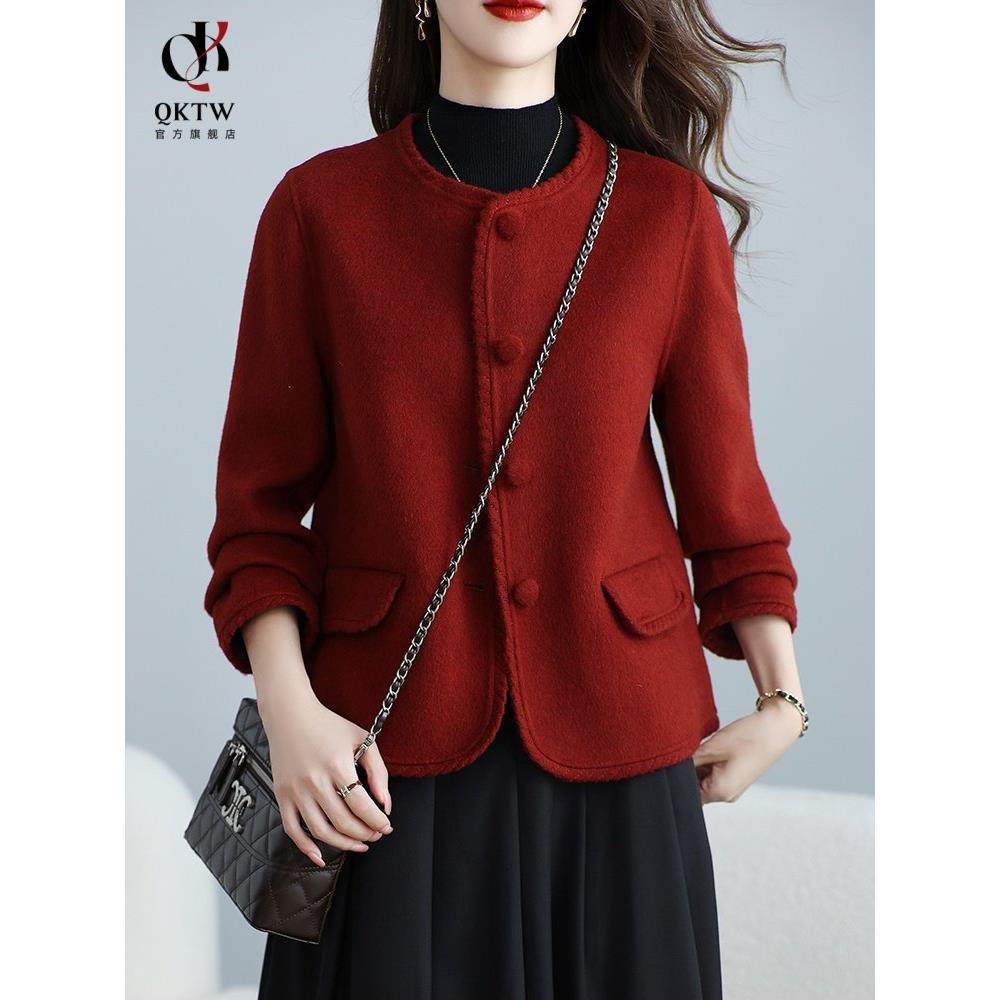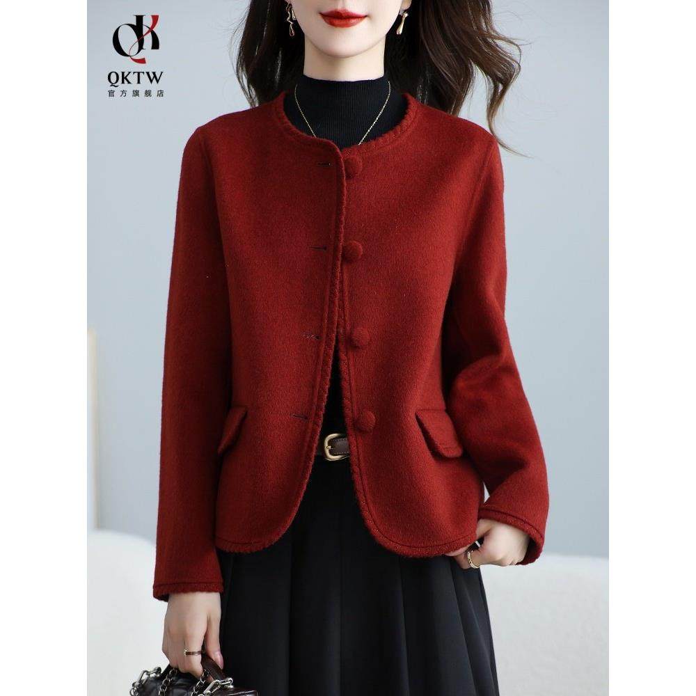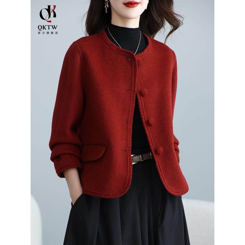 首页> 女装> 毛呢外套女2025新款秋冬季中老年红色双面短款大衣小香风圆领上衣