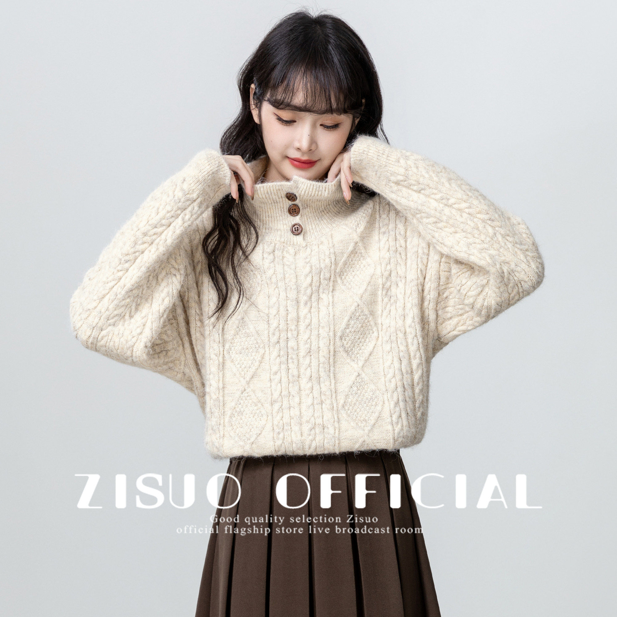 半高领麻花毛衣女秋冬2025新款保暖加厚半开领套头针织衫打底上衣