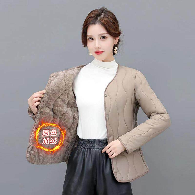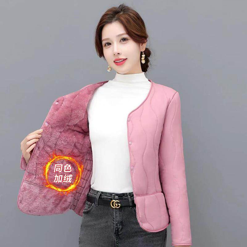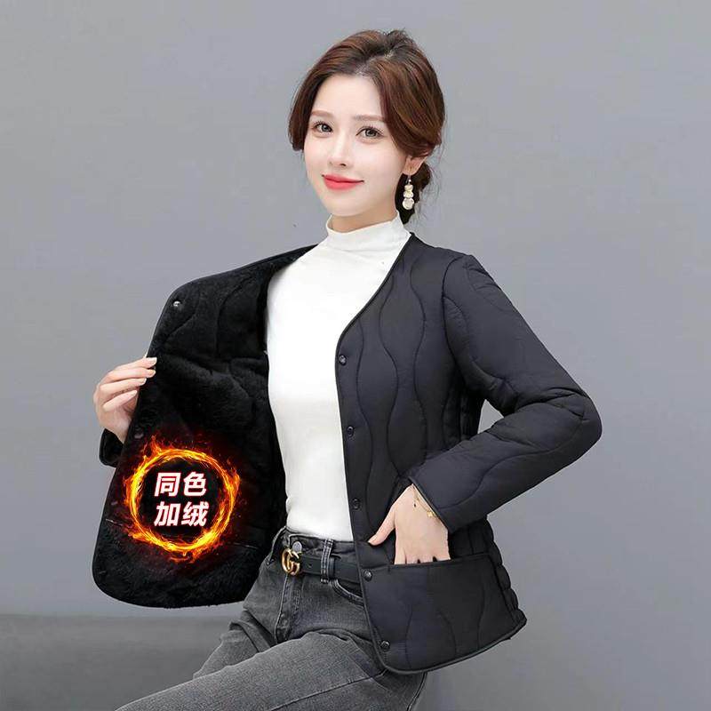 2024秋冬新款加绒加厚羽绒棉内胆女修身显瘦保暖棉袄轻薄百搭外套