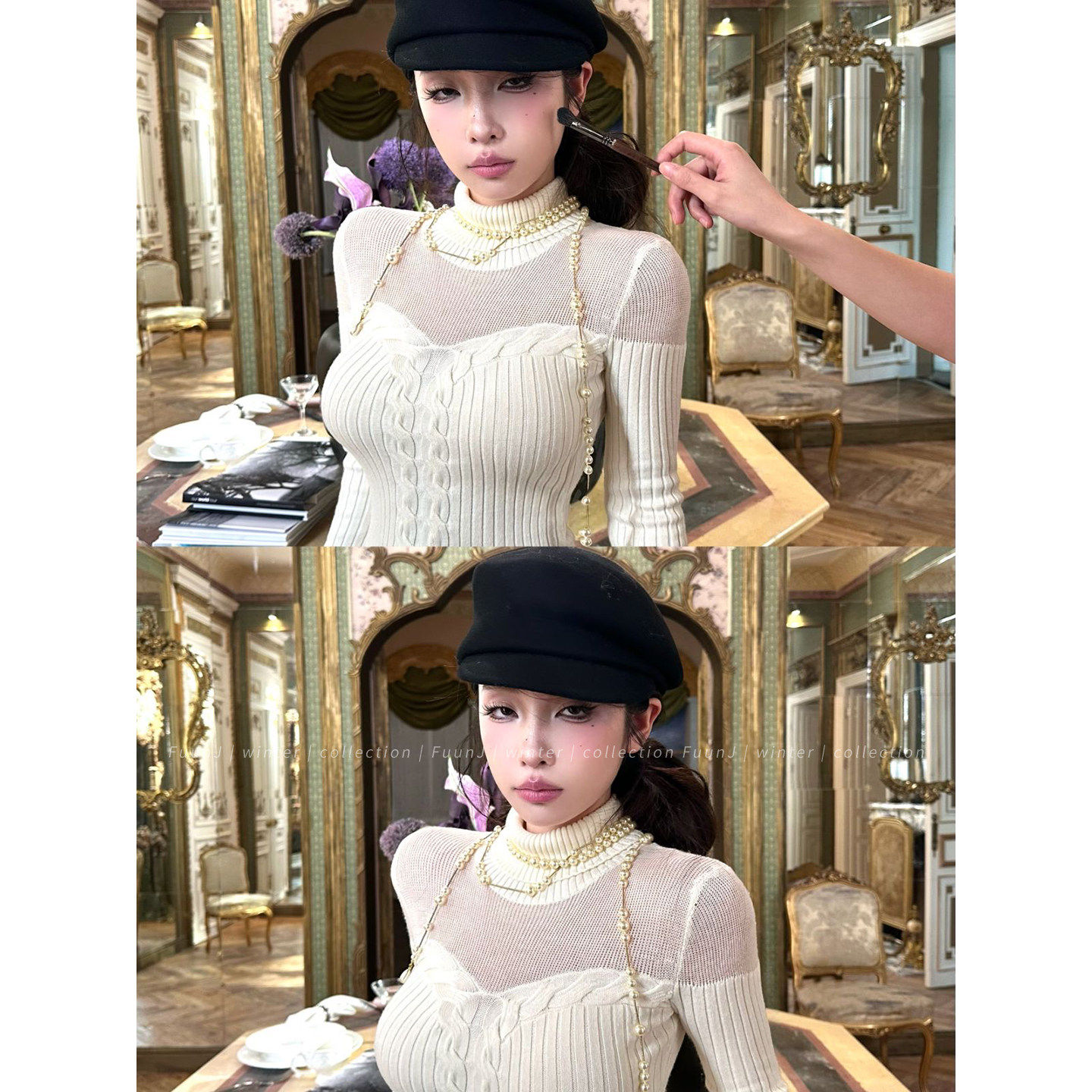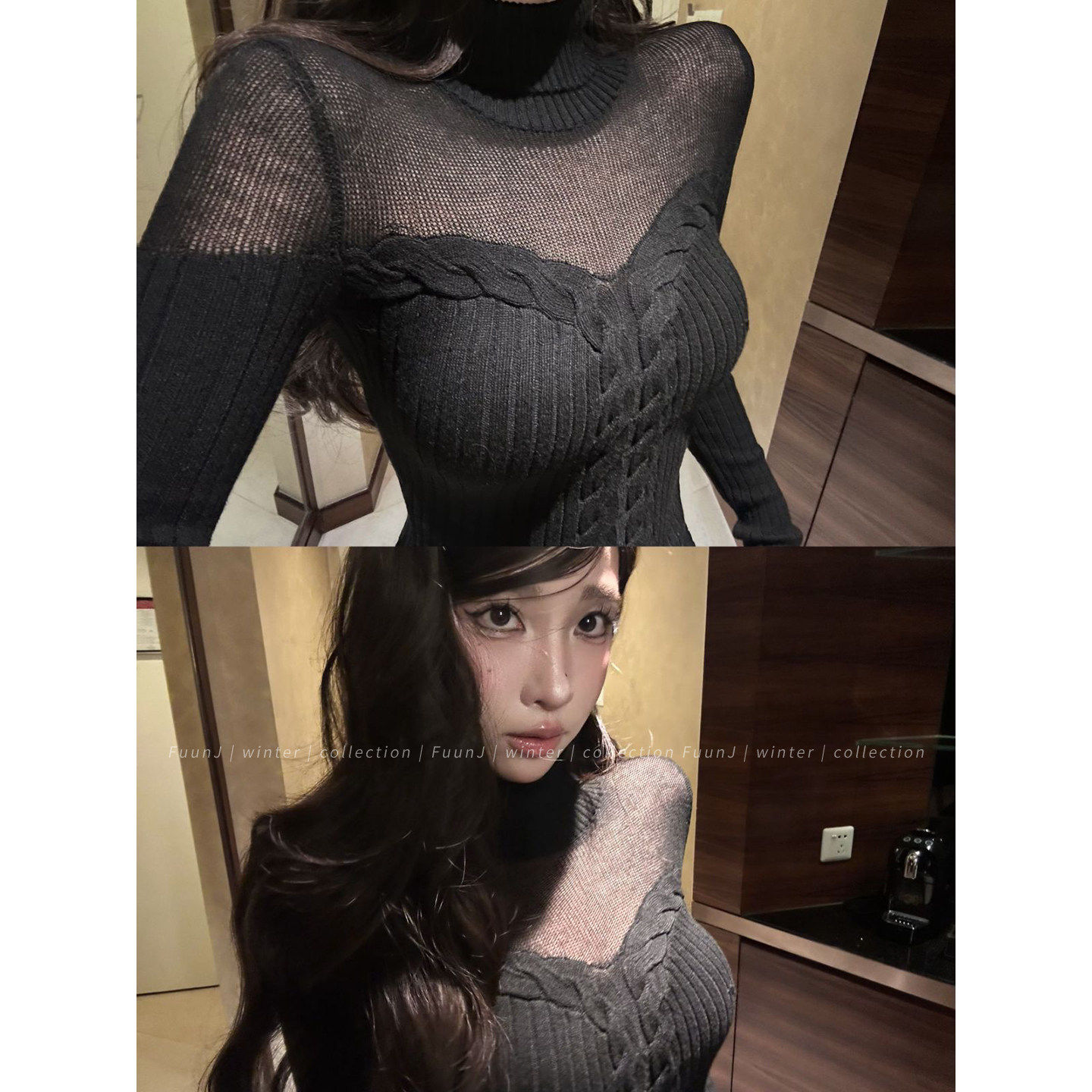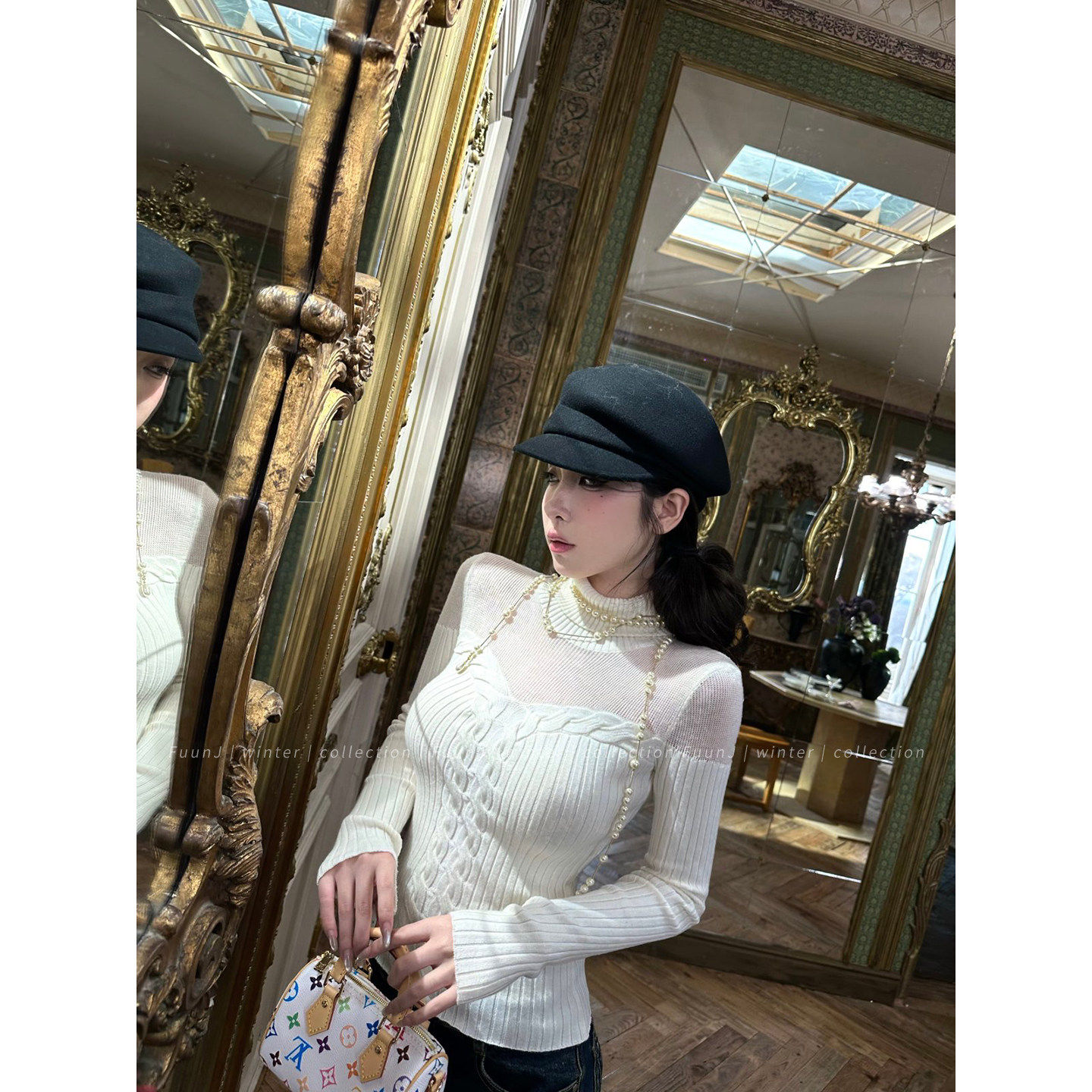 FuunJ 娇女反击设计感收腰显瘦镂空麻花套头毛衣女内搭打底针织衫