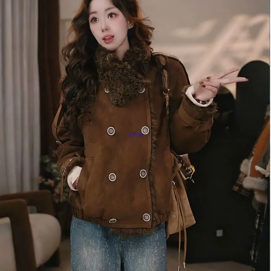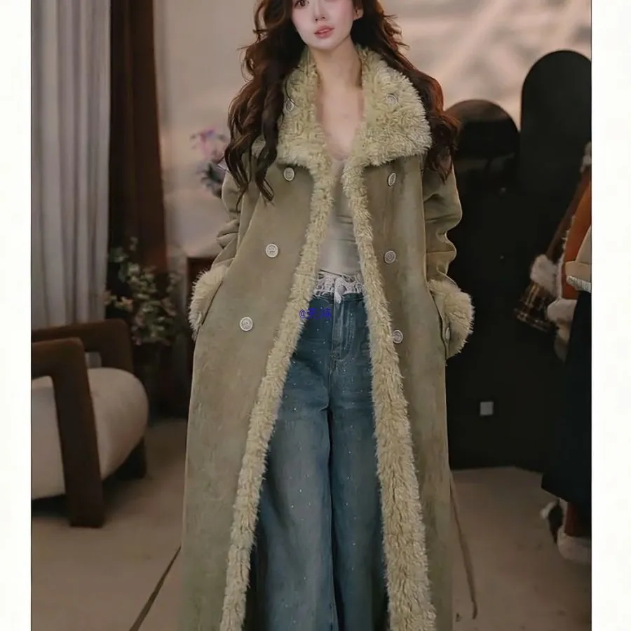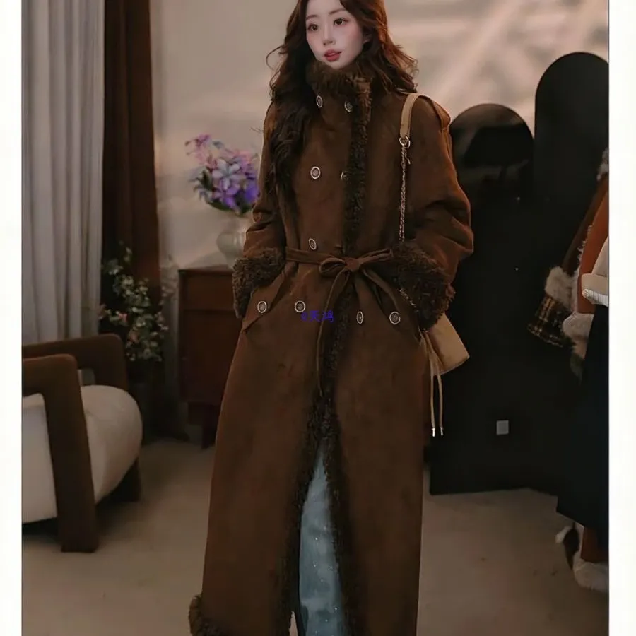 韩系麂皮绒毛毛外套女冬新款慵懒宽松加厚保暖长款仿皮毛一体大衣